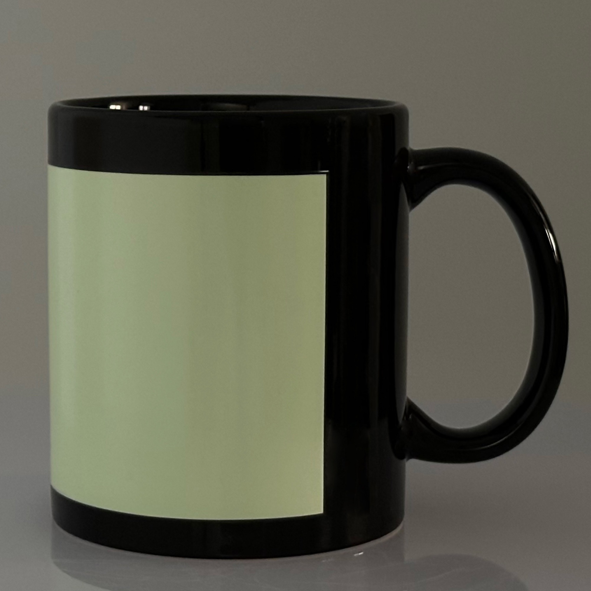 Кружка с областью для печати, что светится в темноте черная (330 мл) с индивидуальным дизайном