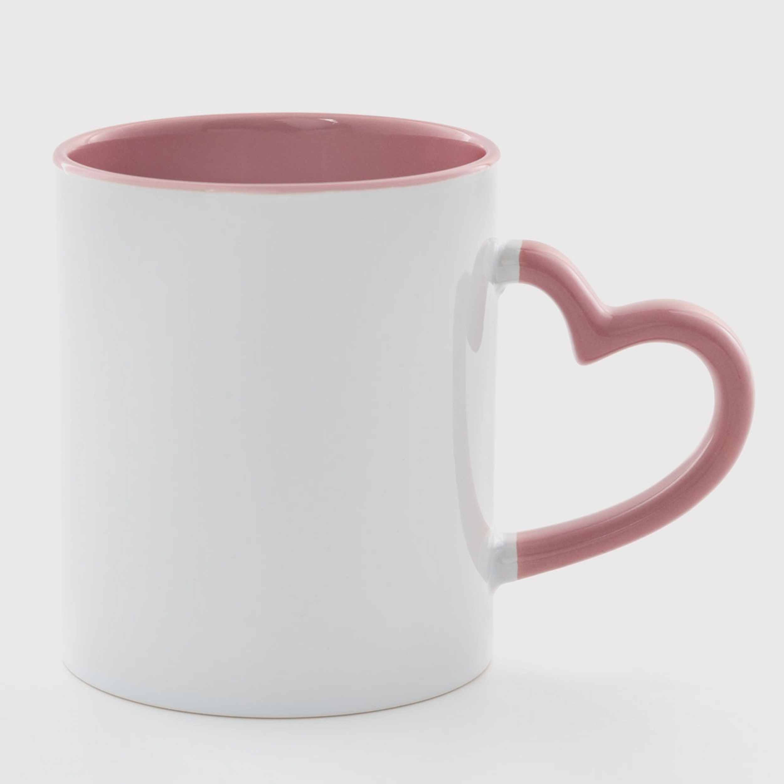 Кружка белая розовая внутри и с розовой ручкой в форме сердца (330 мл) с индивидуальным дизайном