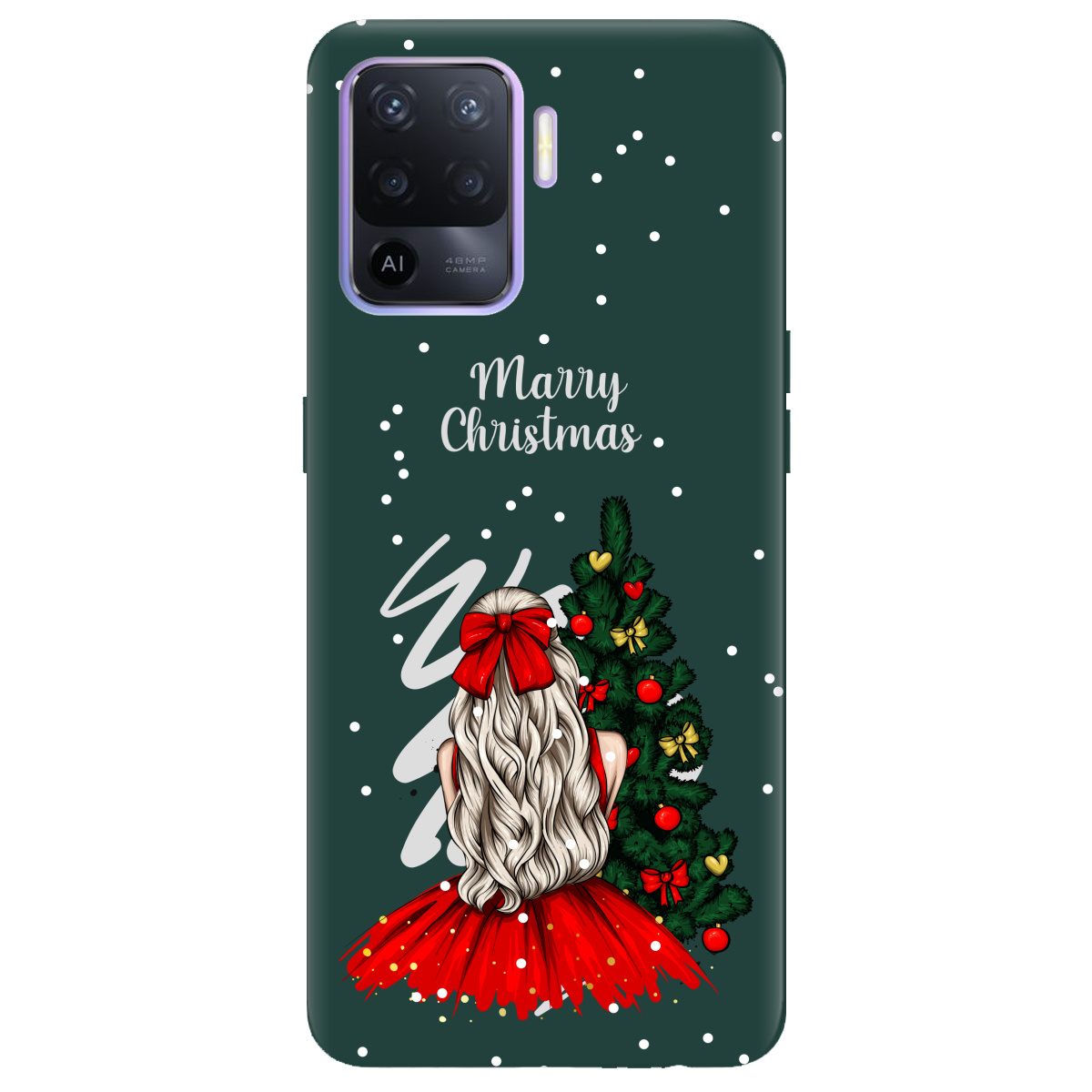 Чехол для Oppo Reno 5 Lite темно-зеленый матовый soft touch Beautiful christmas