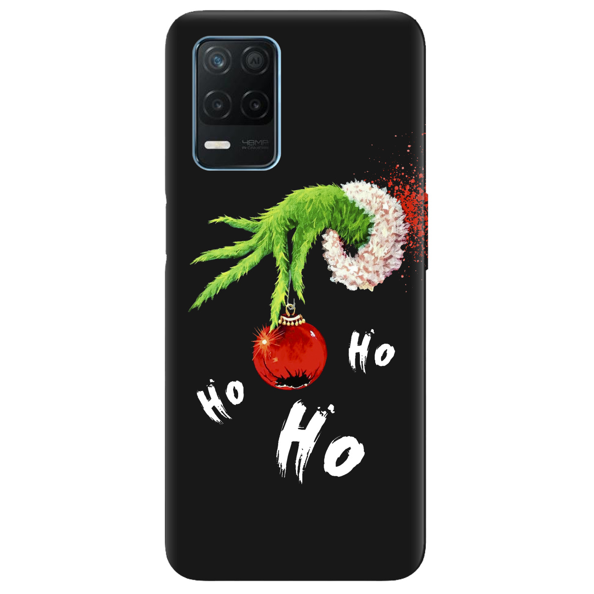 Чехол для Realme 8 4G черный матовый soft touch Grinch HO HO HO