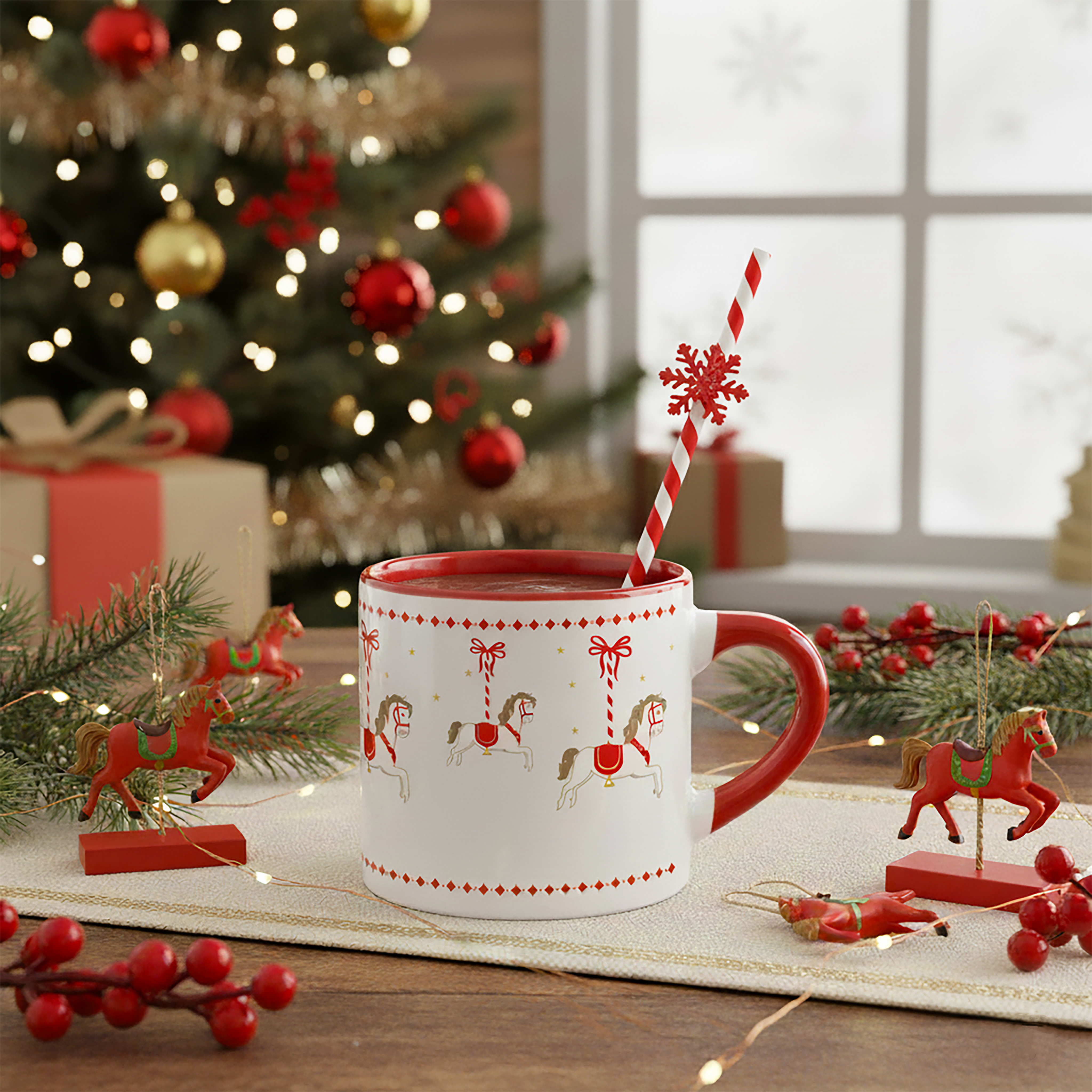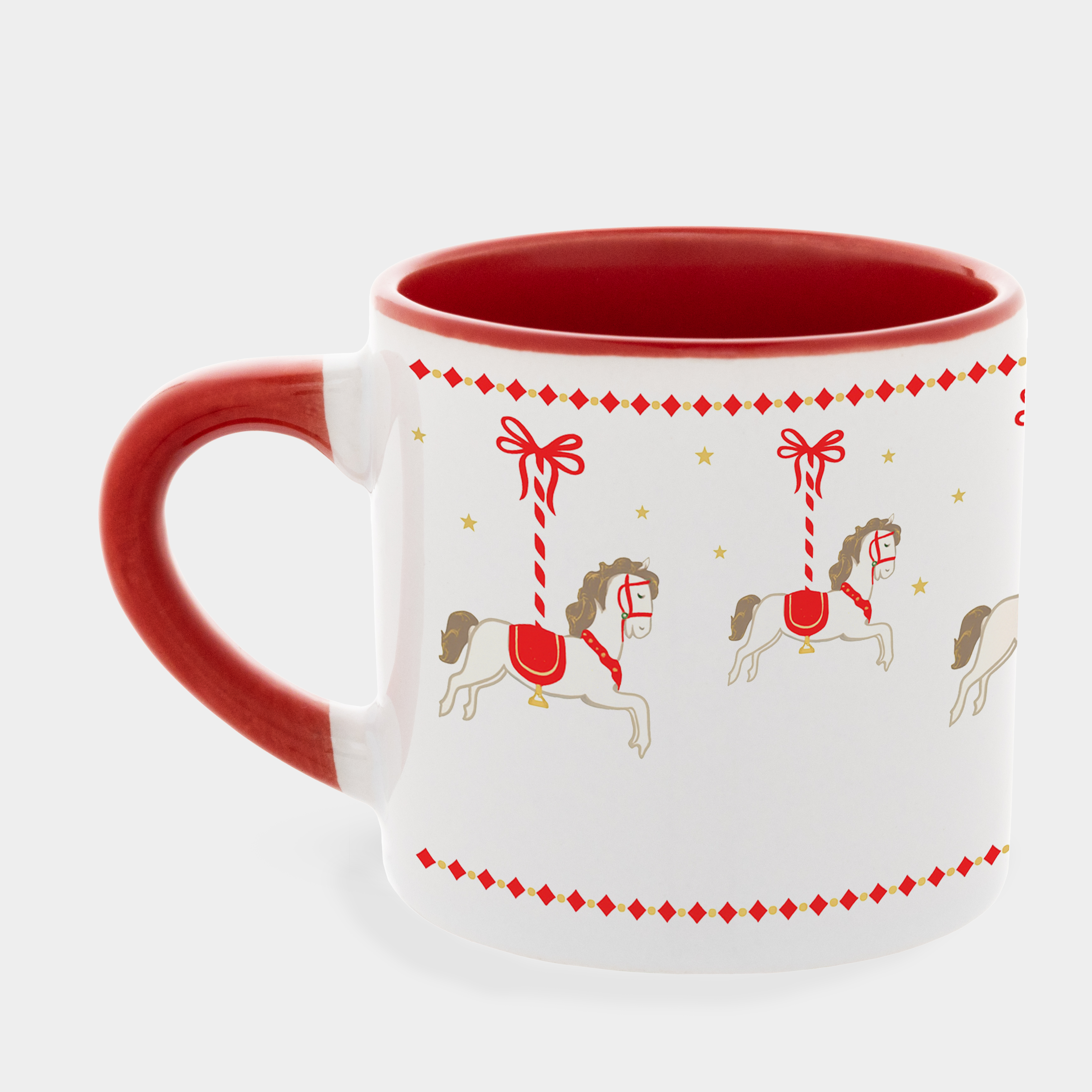 Кружка с красной ручкой, красная внутри (180 мл) Карусель Рождества