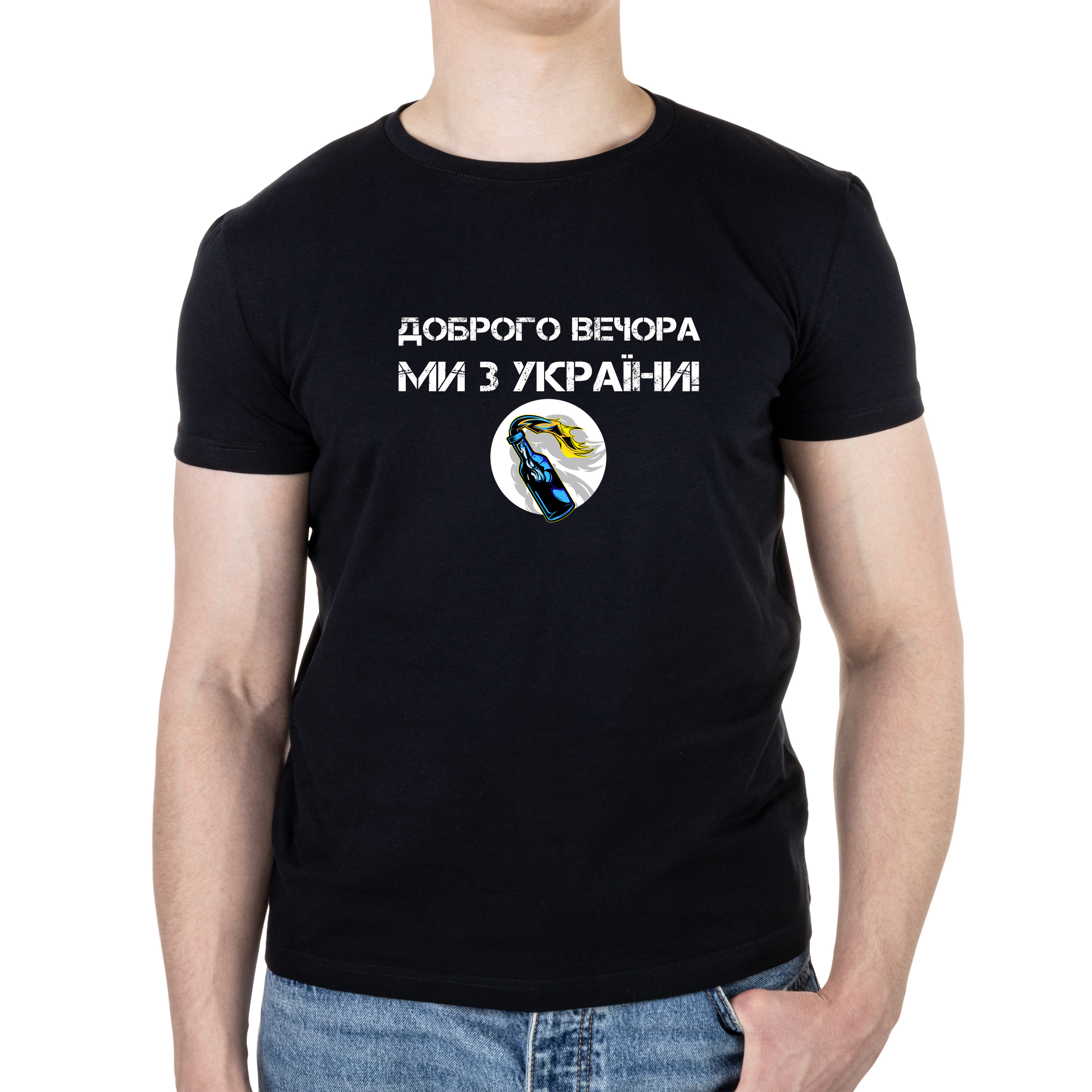 Футболка мужская черная хлопок/эластан А4 размера Доброго вечора, ми з України! Молотов XXL