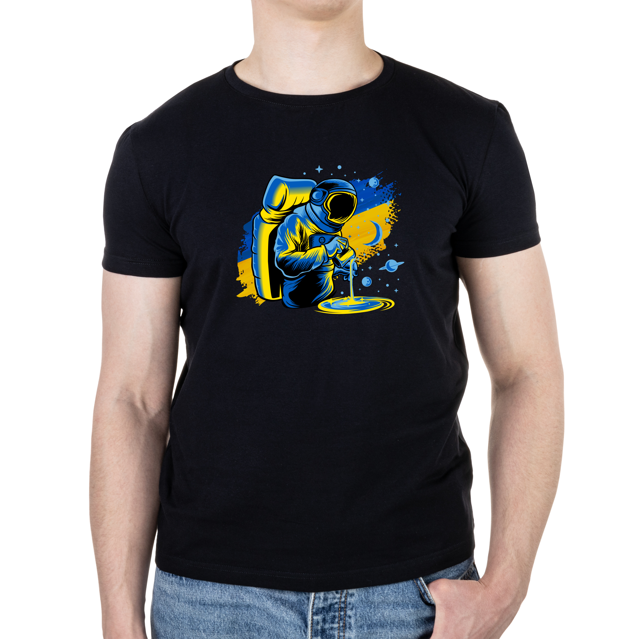 Футболка мужская черная хлопок/эластан А4 размера Ukrainian universe M