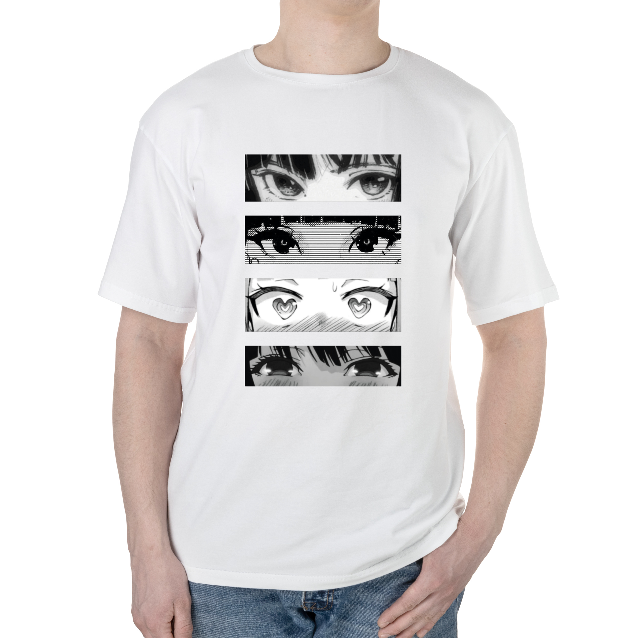 Футболка мужская оверсайз белая хлопок/эластан А3 размера Закохані очі XXXL