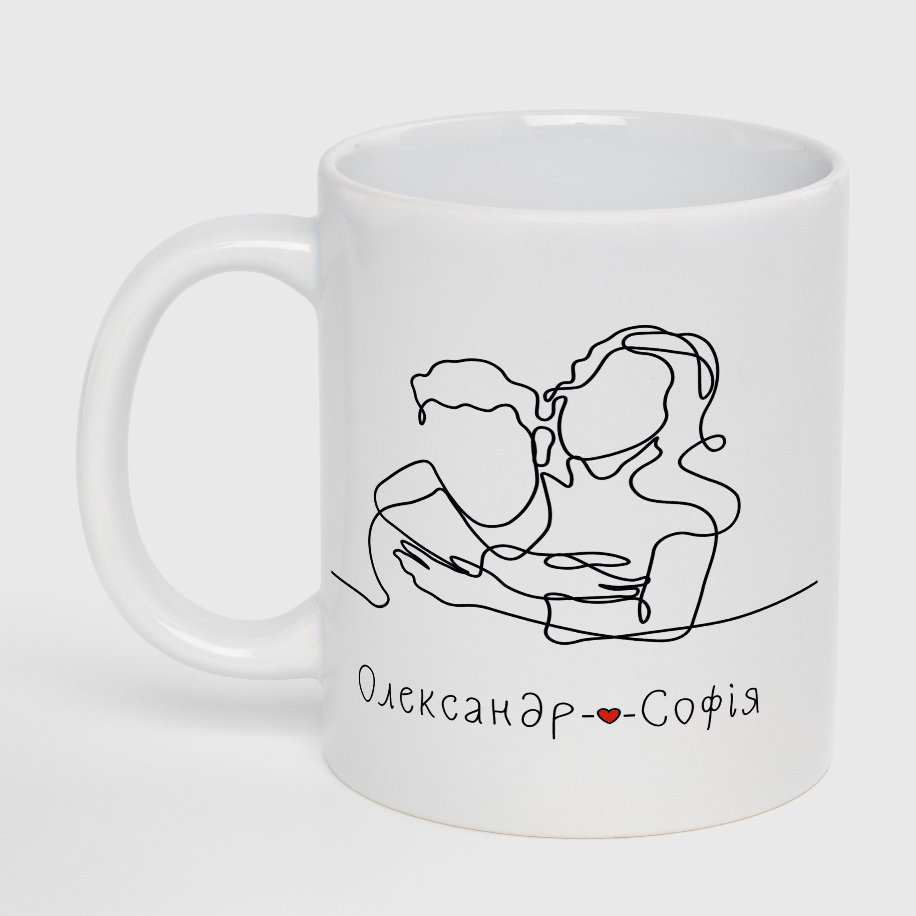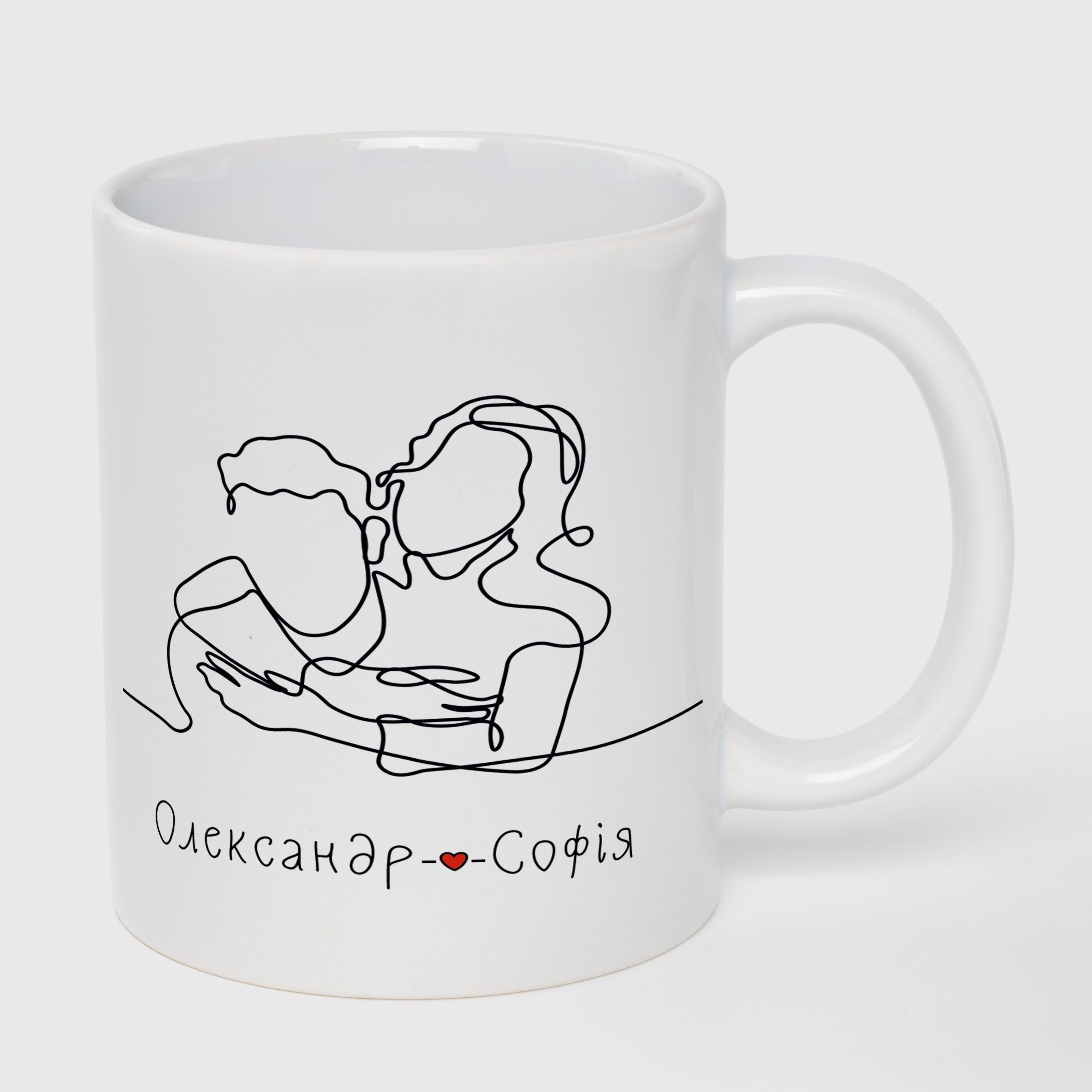 Кружка белая (330 мл) с вашими именами "Тепло любви"
