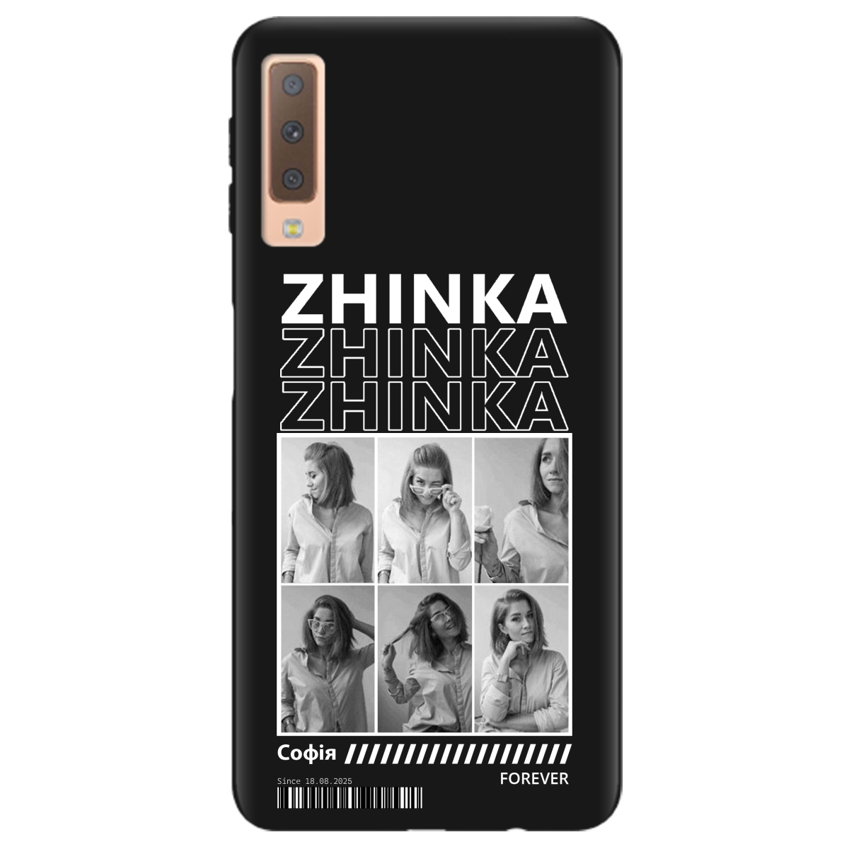 Стильный чехол Zorrov для Samsung Galaxy A7 2018 черный матовый soft touch Zhinka (с вашими фото) не только защитит телефон, но и подчеркнет Вашу индивидуальность.