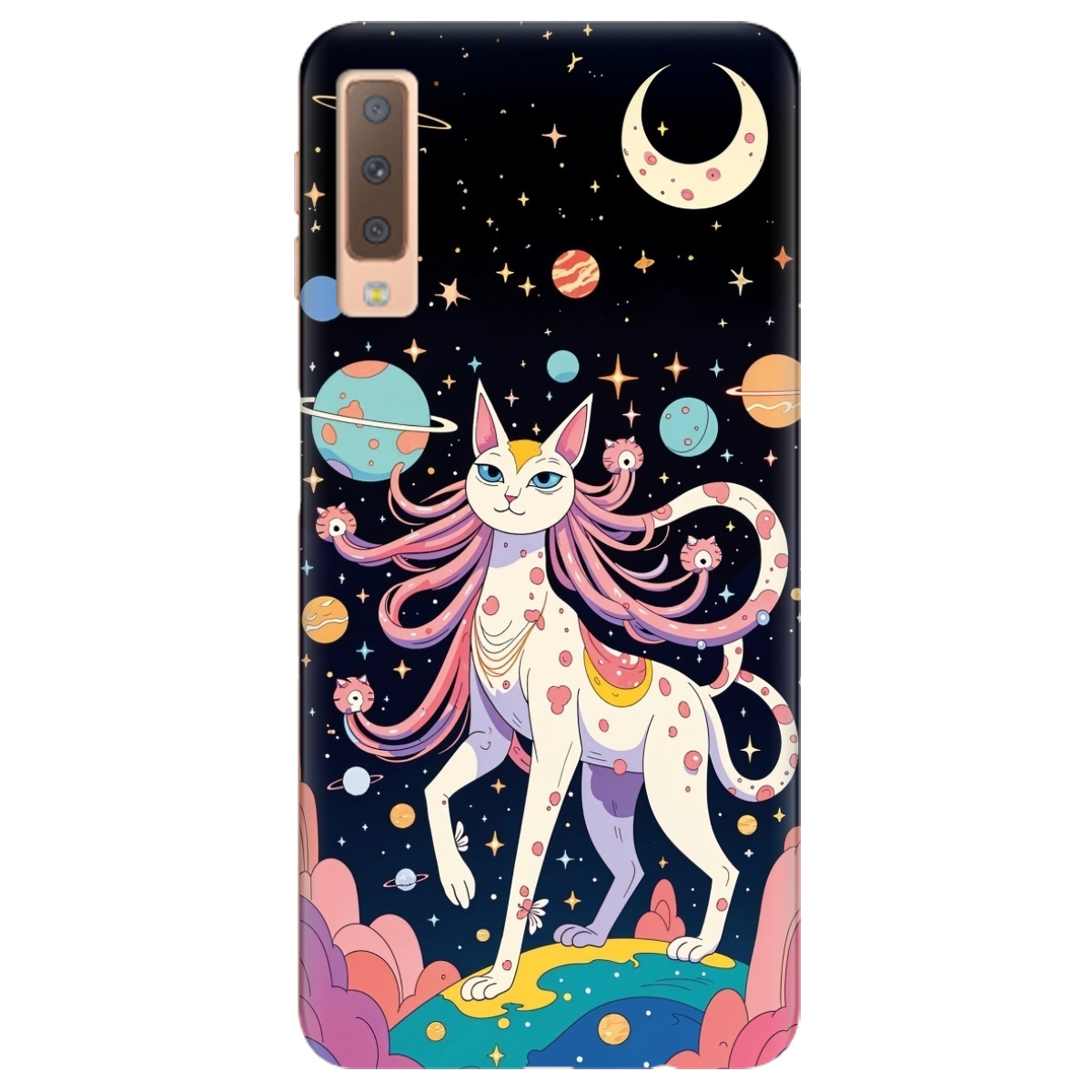 Стильный чехол Zorrov для Samsung Galaxy A7 2018 прозрачный Cosmic Cat не только защитит телефон, но и подчеркнет Вашу индивидуальность.