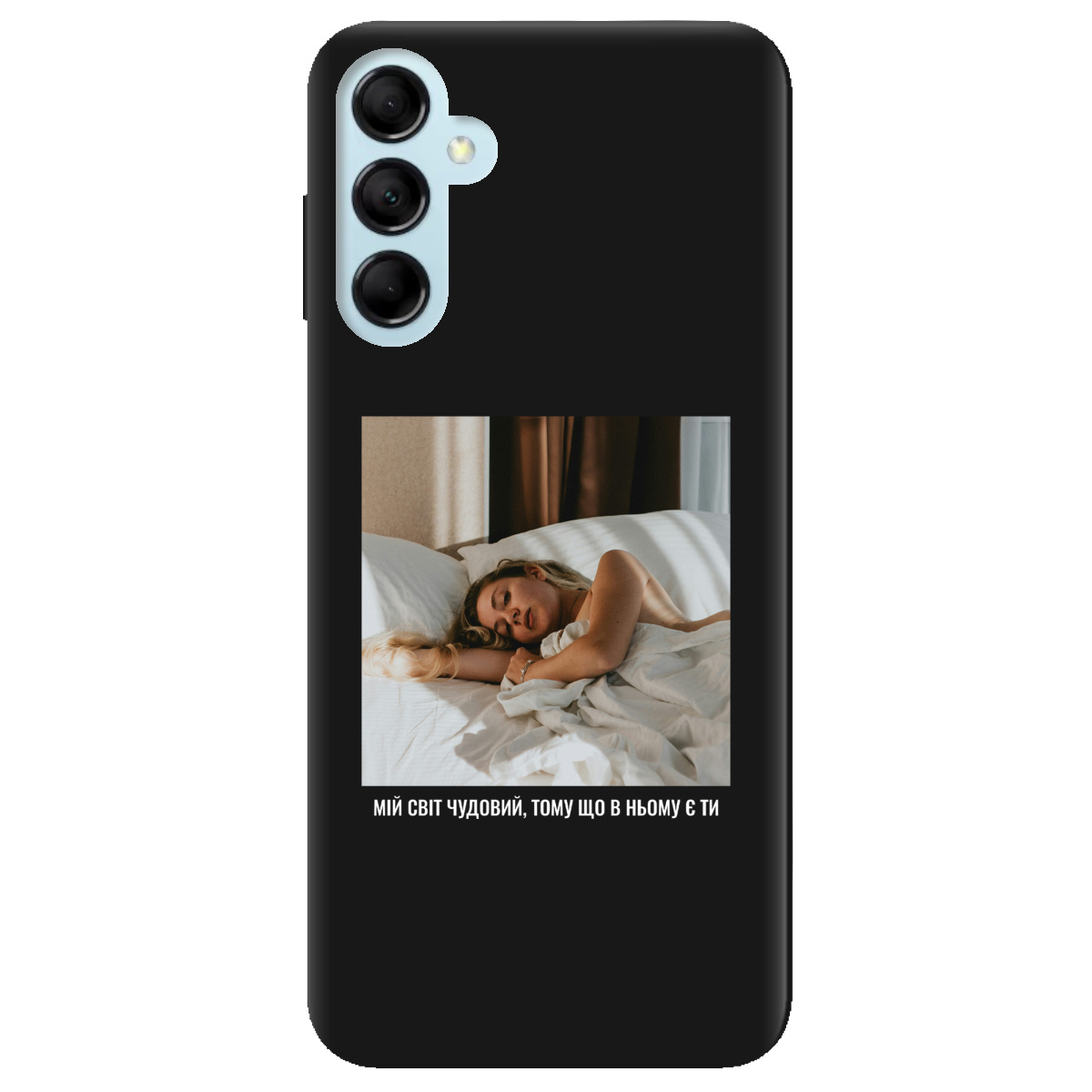 Чехол для Samsung Galaxy M14 5G черный матовый soft touch З вашим фото "Ти мій світ"
