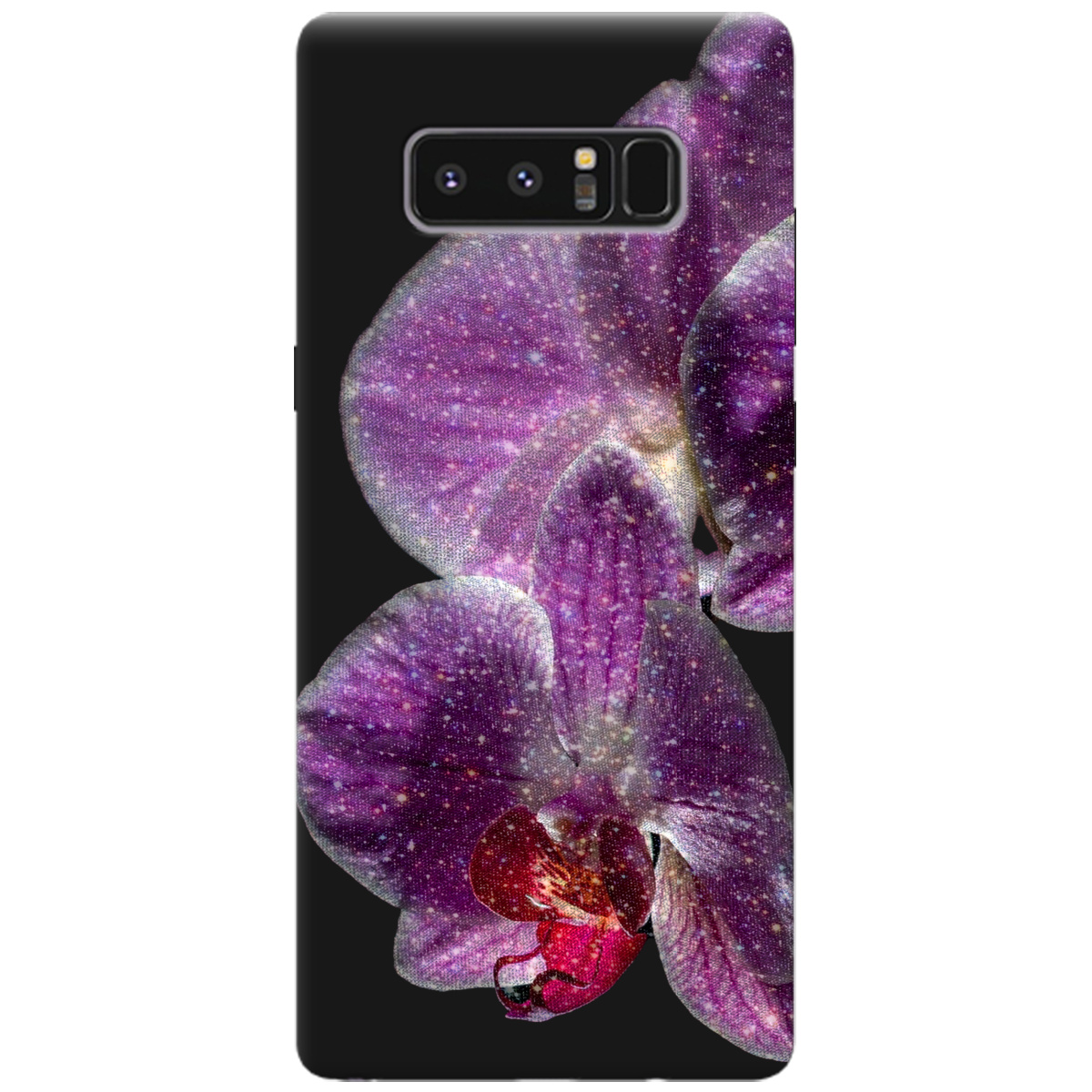 Чехол для Samsung Galaxy Note 8 черный матовый soft touch Волшебная орхидея