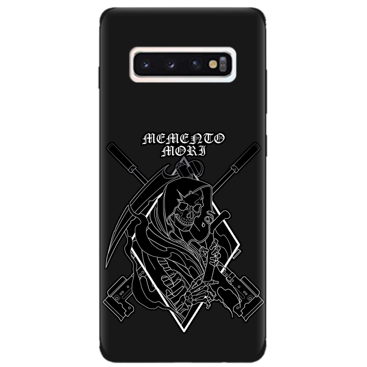 Стильный чехол Zorrov для Samsung Galaxy S10 черный матовый soft touch Пам'ятай про смерть не только защитит телефон, но и подчеркнет Вашу индивидуальность.