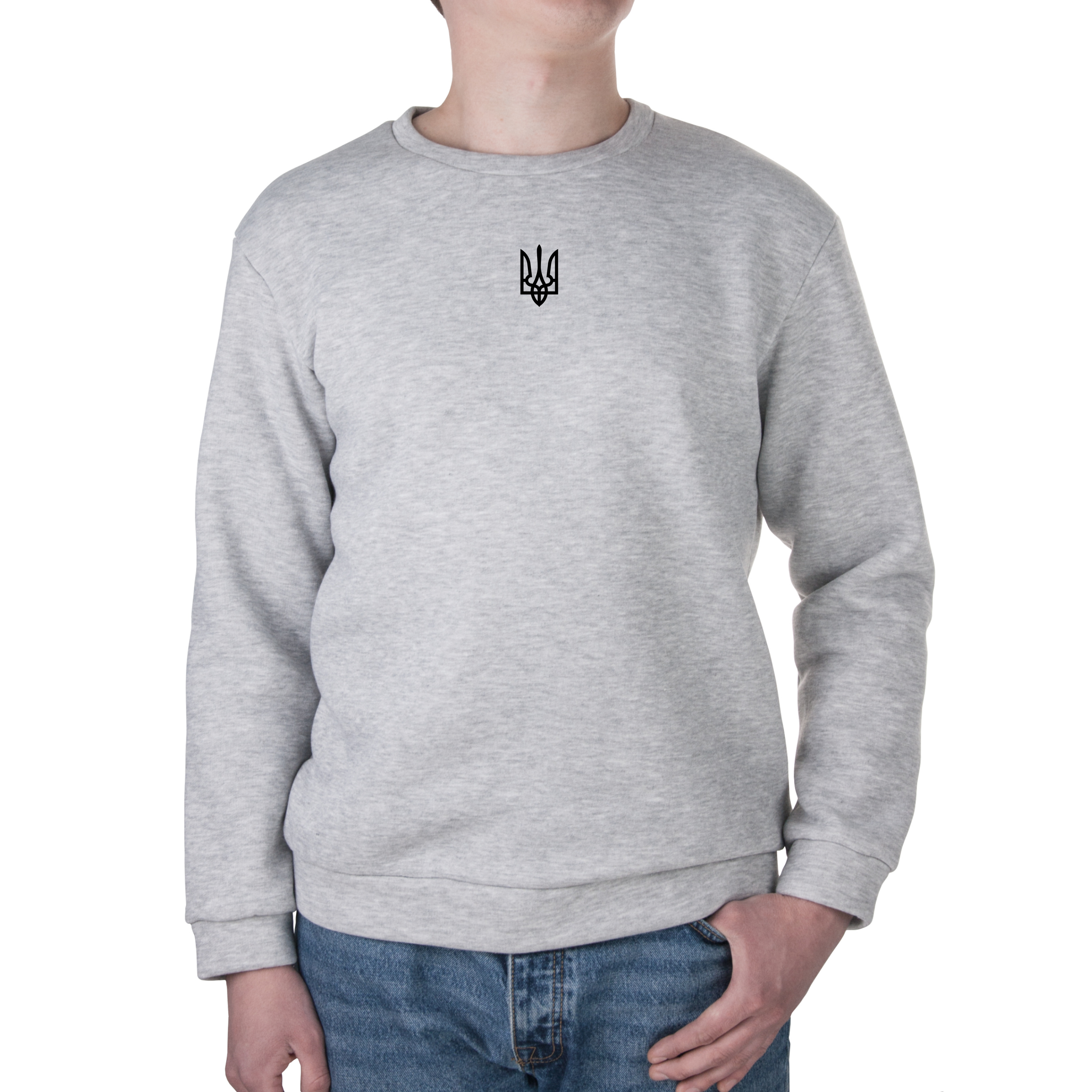 Свитшот унисекс трёхнитка с начёсом серый Тризуб XS
