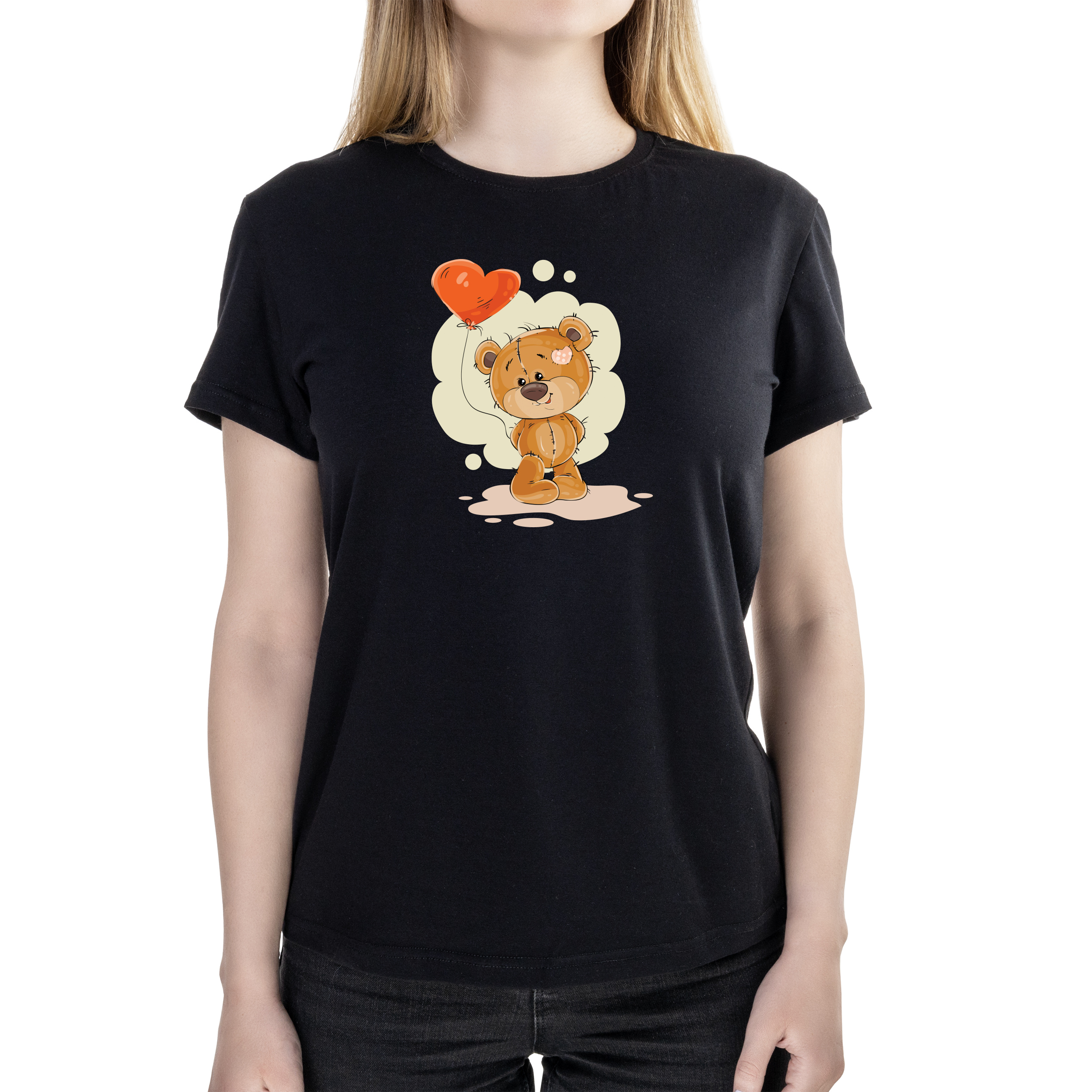 Футболка женская полуприталённая черная хлопок/эластан А4 размера Bear with balloon S