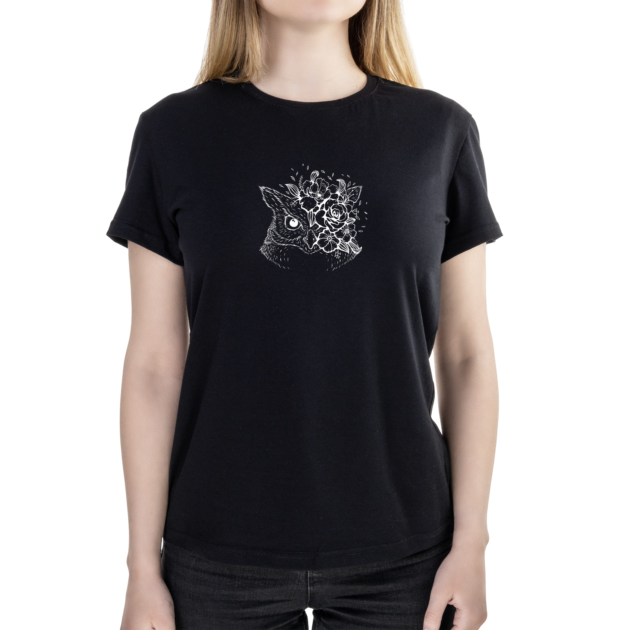 Футболка женская полуприталённая черная хлопок/эластан А4 размера light owl XXXL