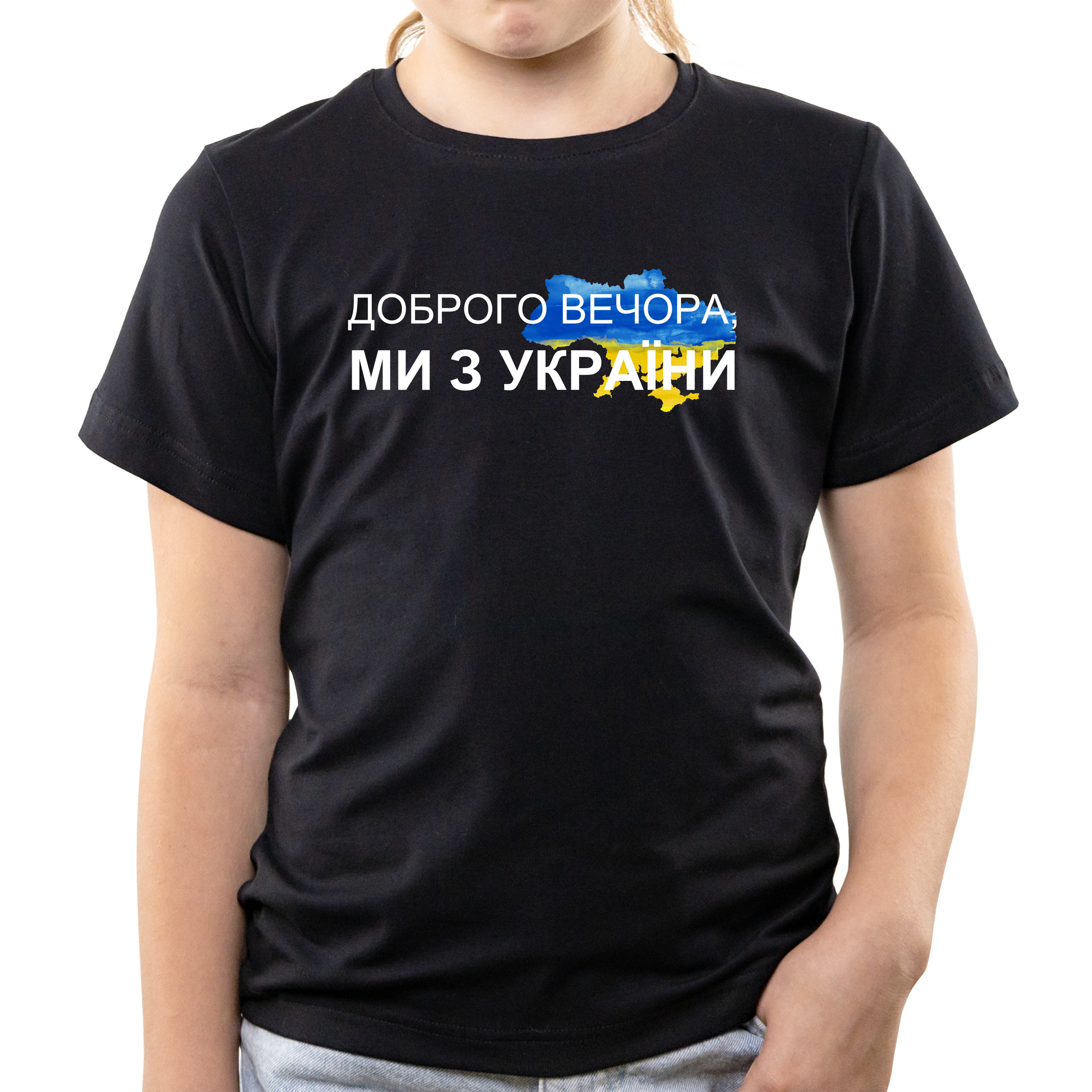 Футболка детская чёрная хлопок/эластан Доброго вечора, ми з України 116