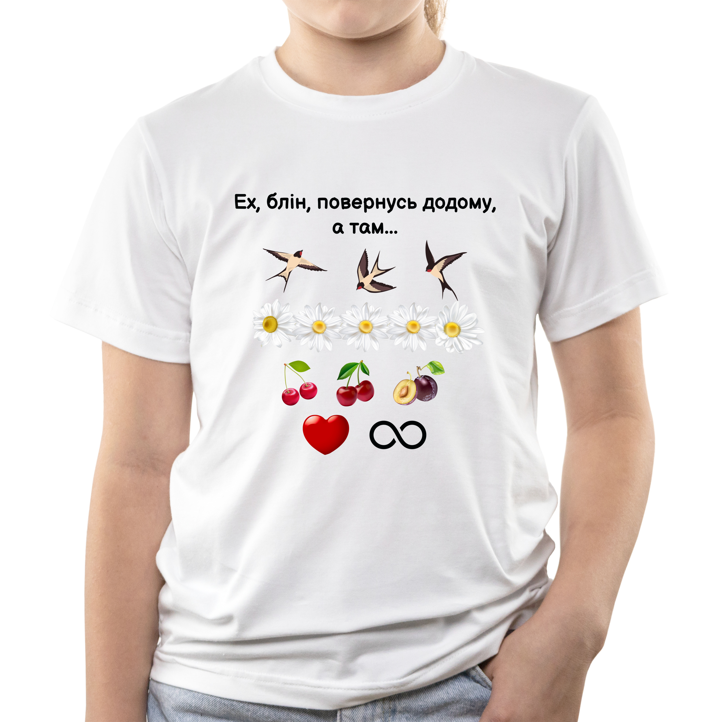 Футболка детская белая хлопок/эластан Ластівки, ластівки, ластівки 164