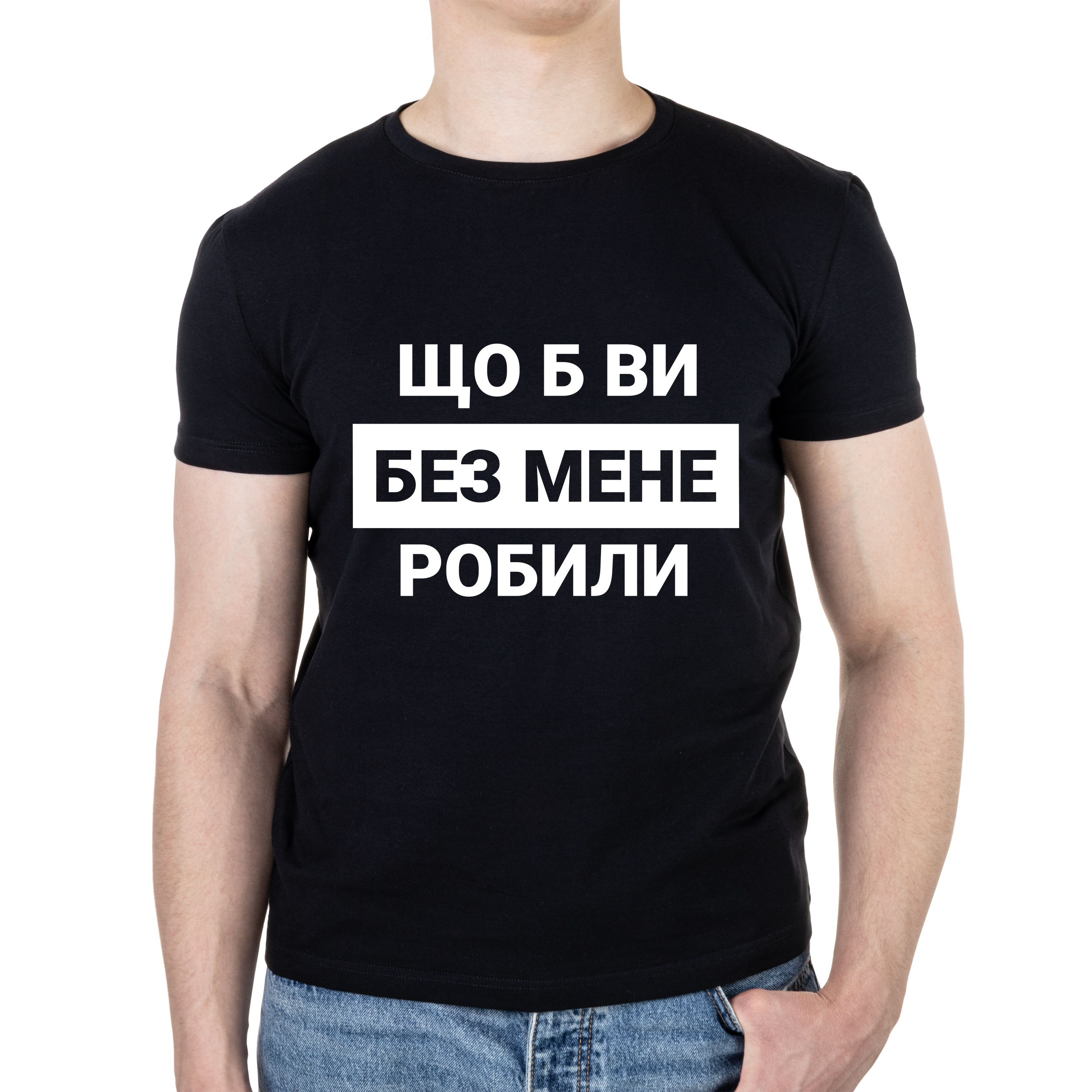 Футболка мужская хлопок/эластан А3 размера Що б ви без мене робили XS