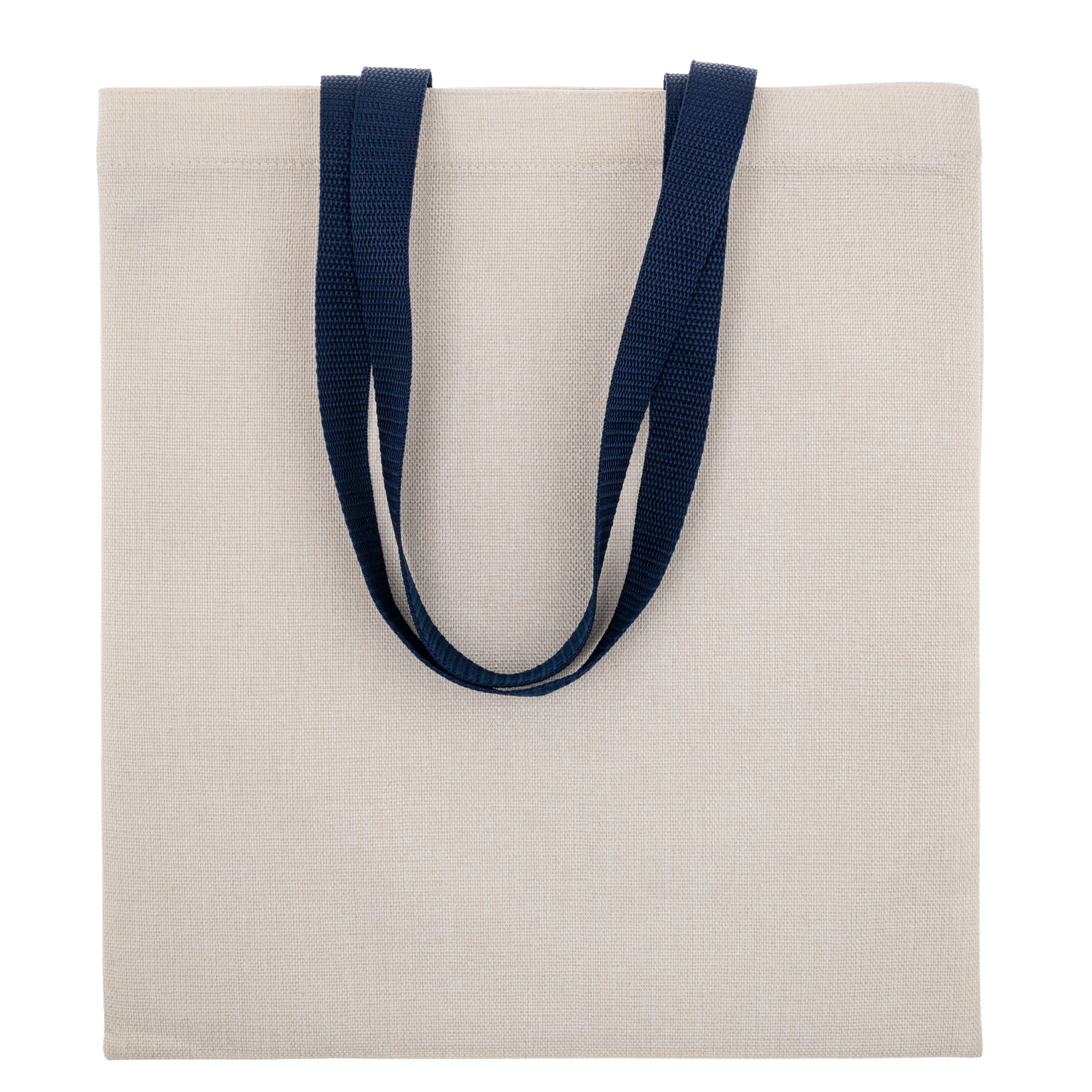 Еко сумка лляна вертикальна з темно-синіми ручками 35*38,5 см з індивідуальним дизайном
