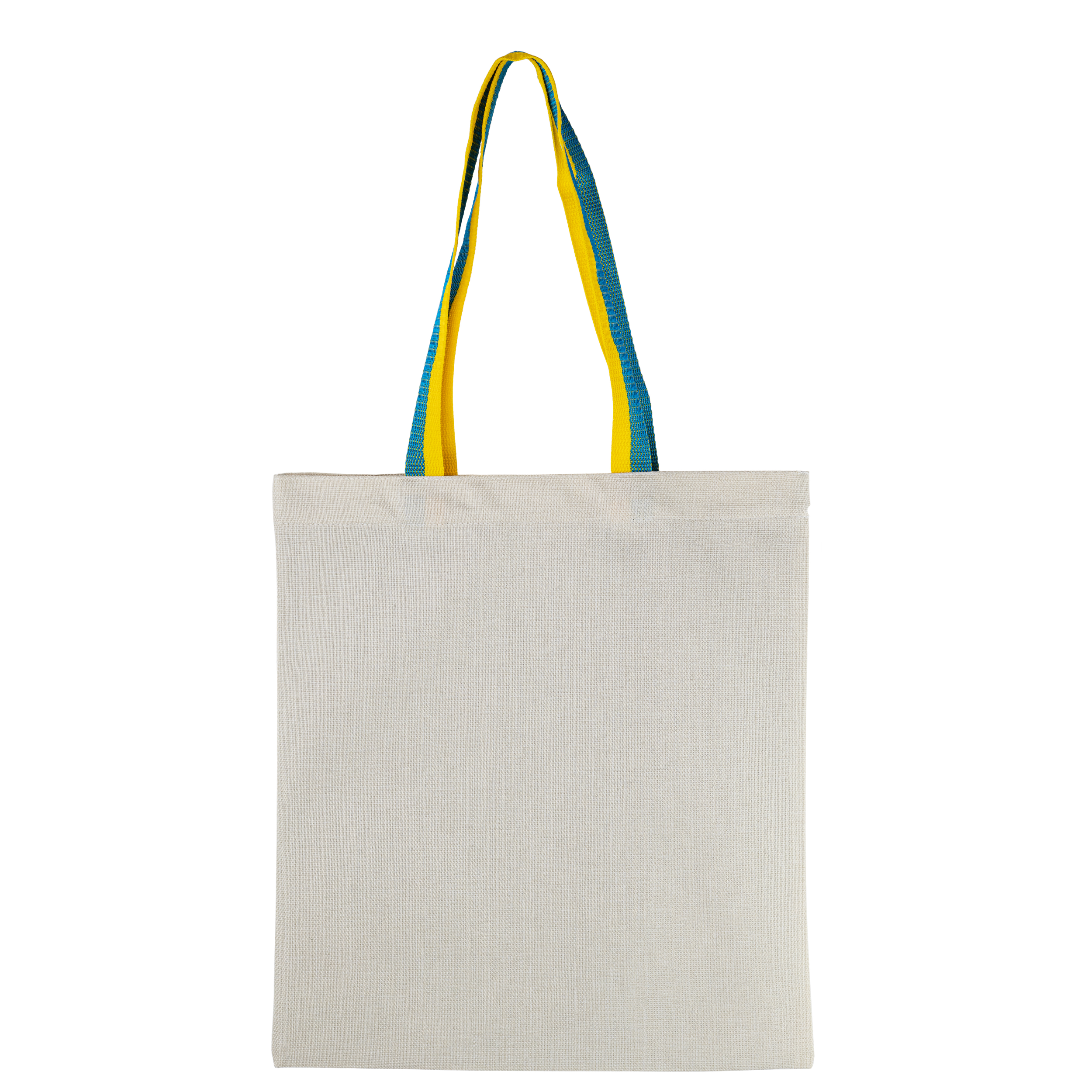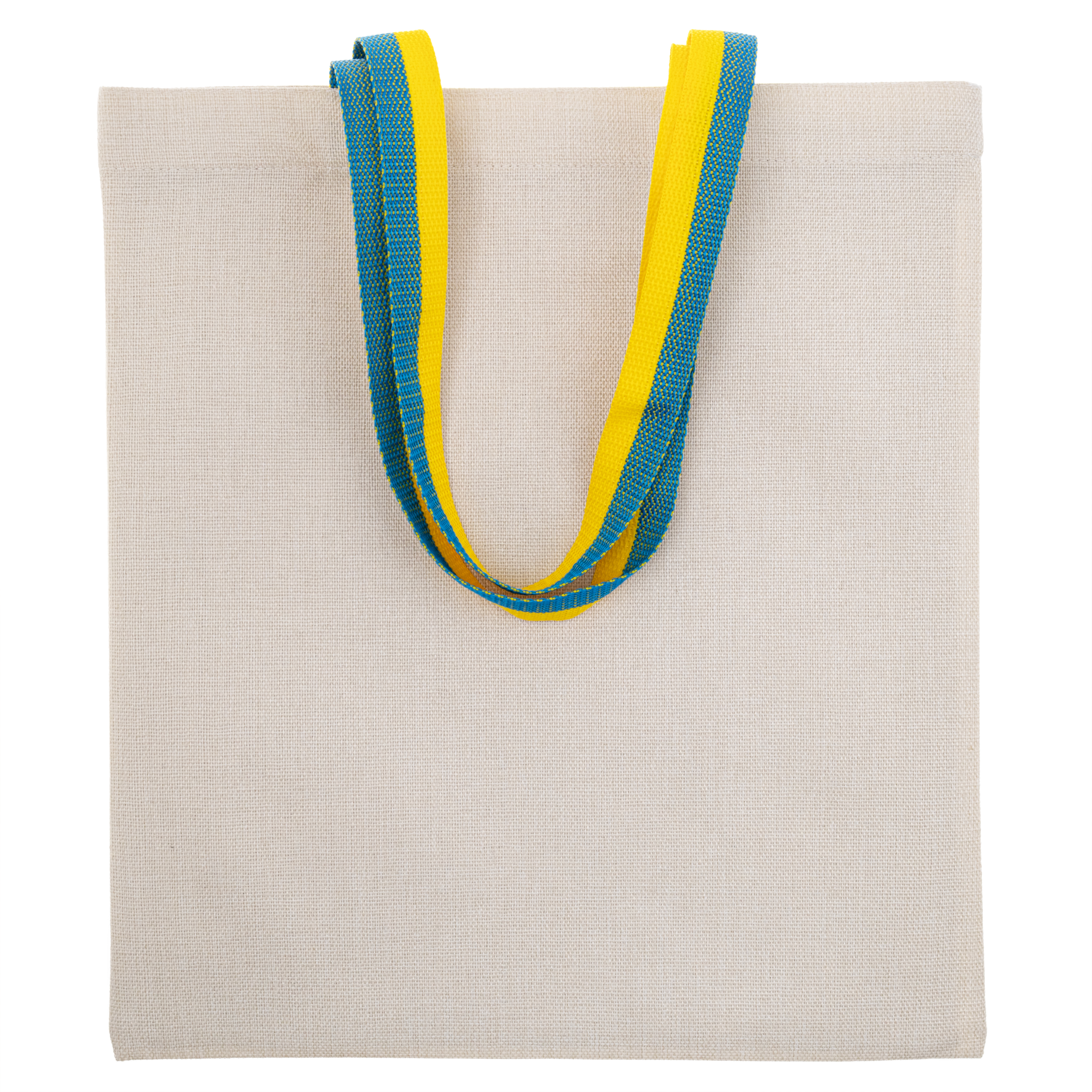 Еко сумка лляна вертикальна з жовто-блакитними ручками 35*38,5 см з індивідуальним дизайном