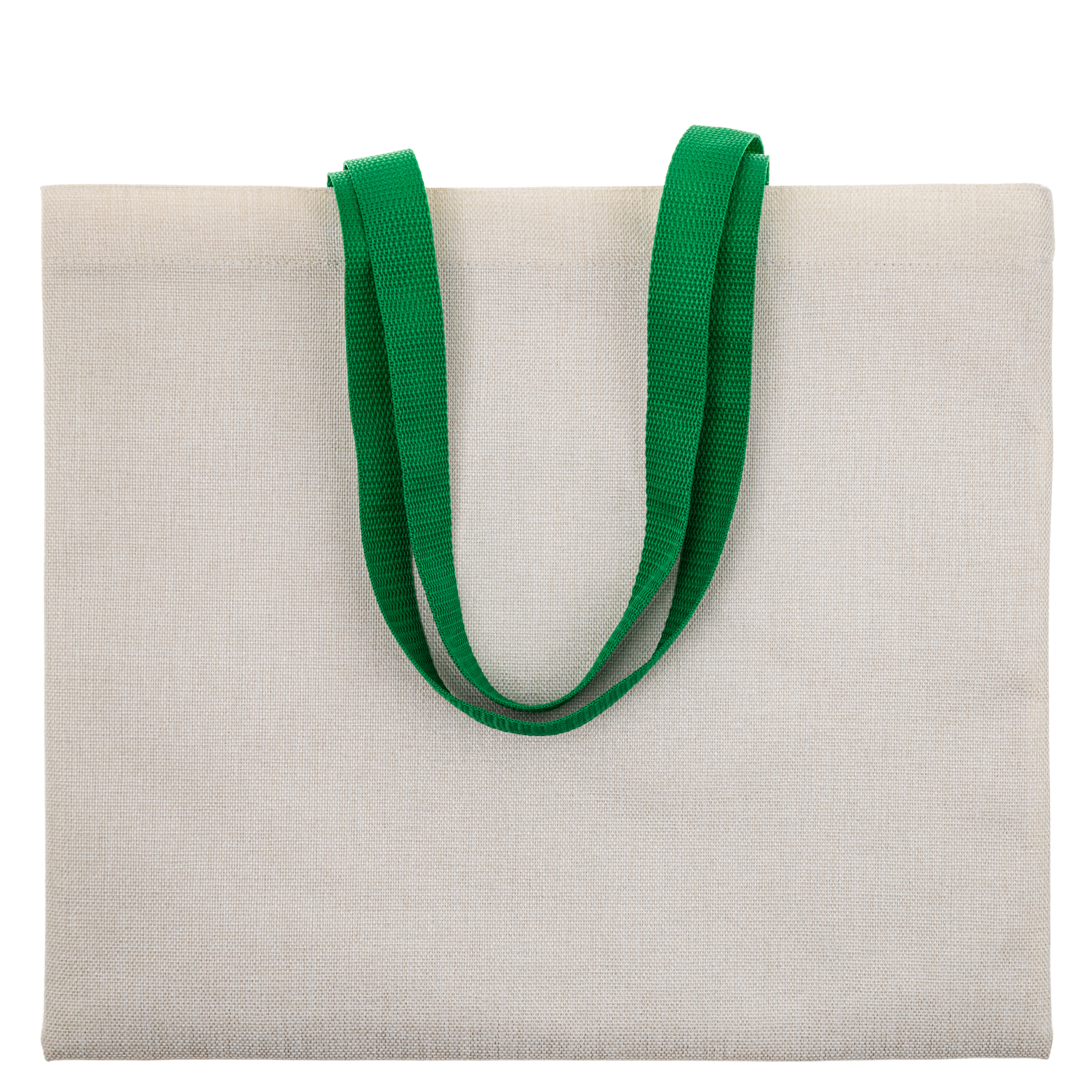 Еко сумка лляна вертикальна з салатовими ручками 40,5*35,5 см з індивідуальним дизайном