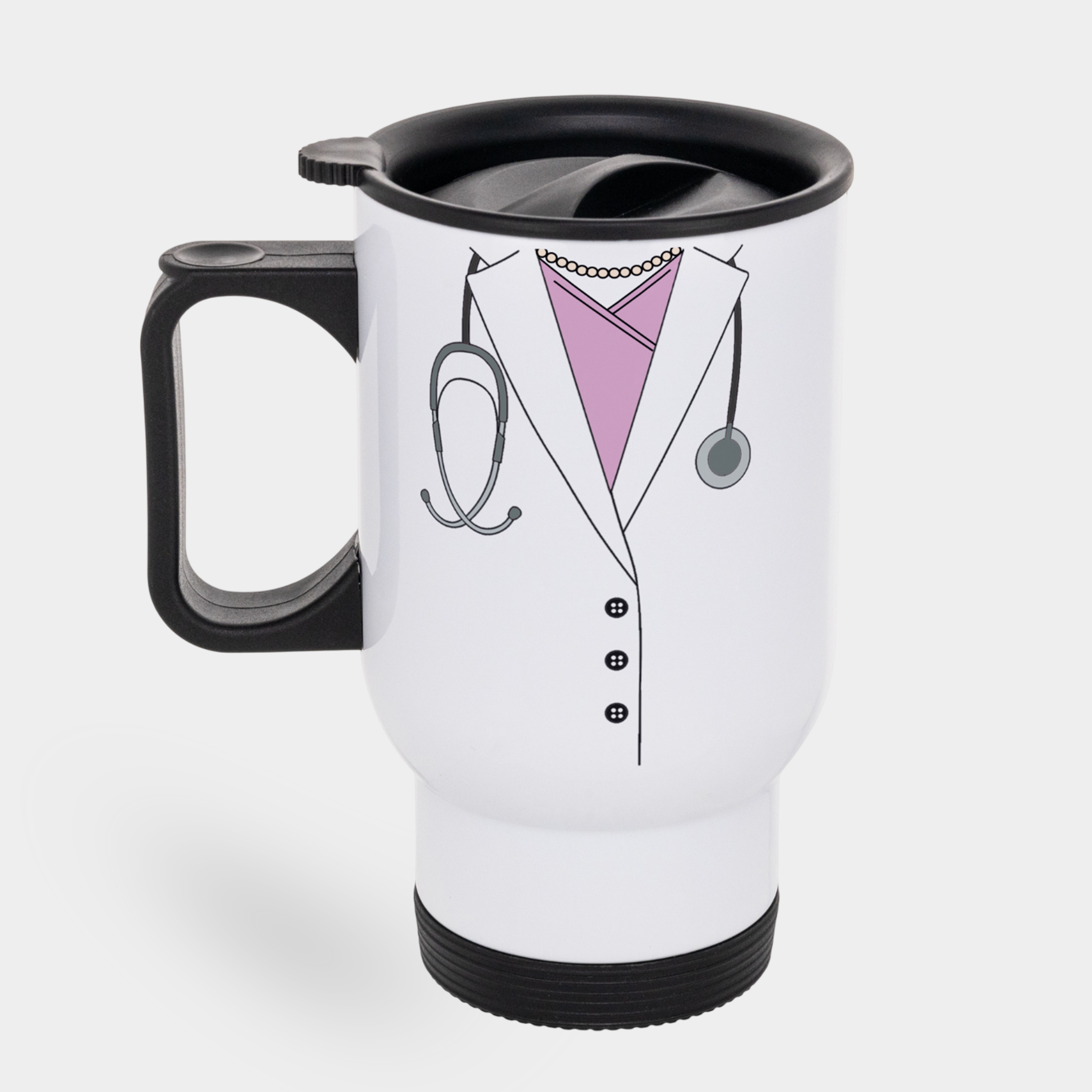 Термочашка автомобільна металева біла (450 мл) Лікарка