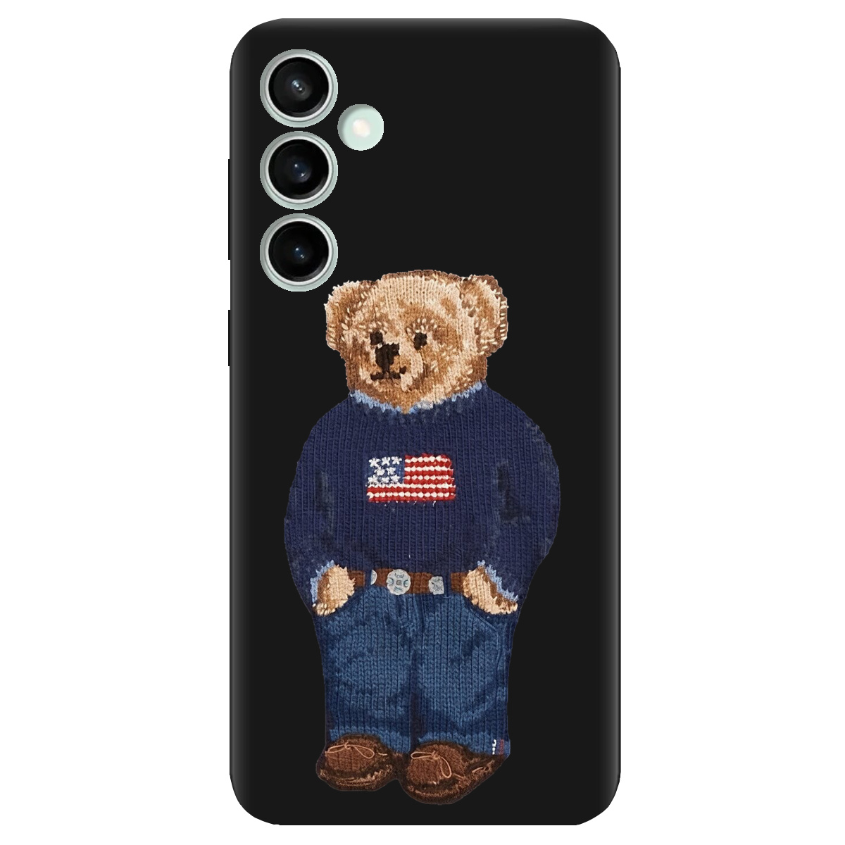 Стильний чохол Zorrov для Samsung Galaxy S23 FE чорний матовий soft touch Американський ведмедик не лише захистить телефон, а й підкреслить Вашу індивідуальність.