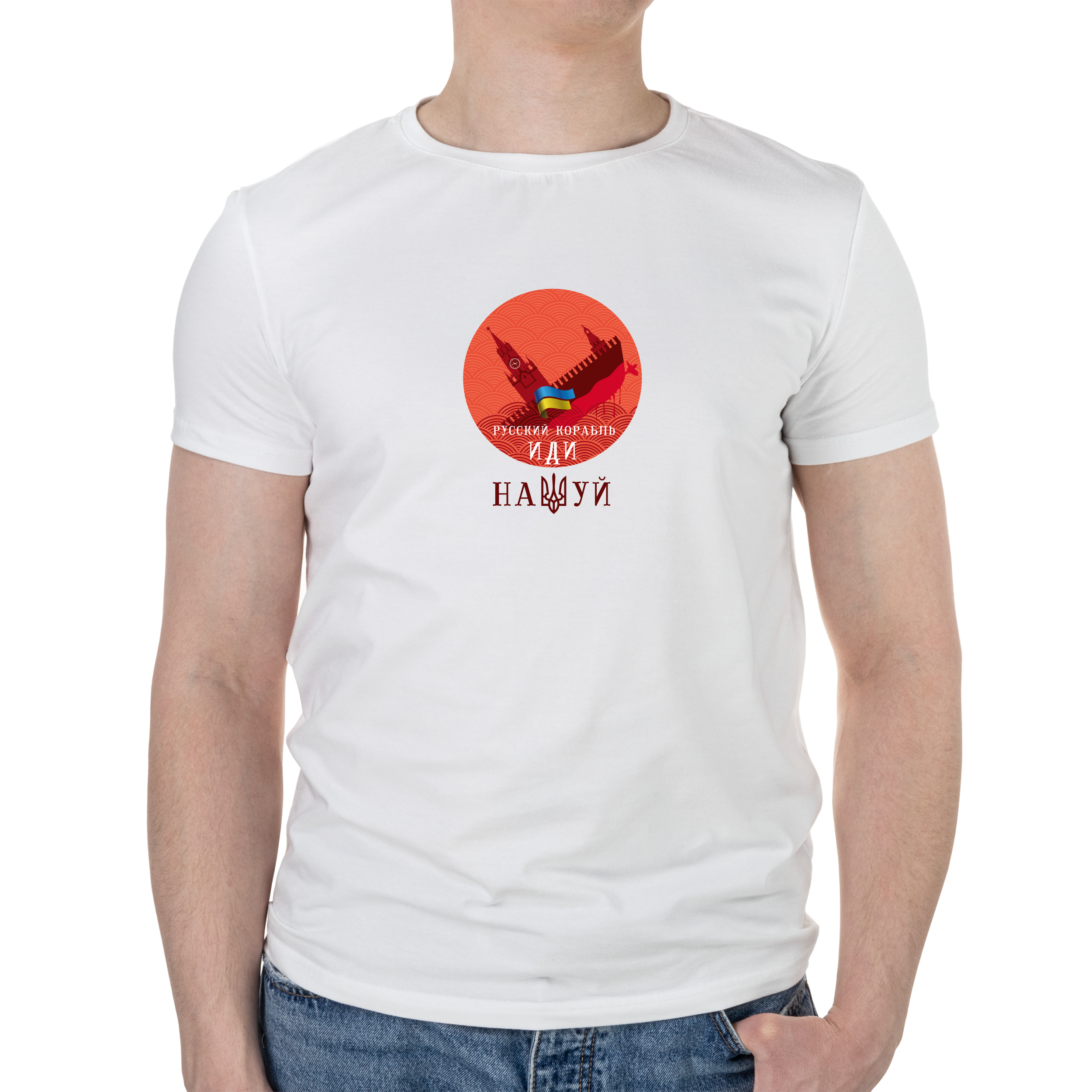 Футболка чоловіча біла бавовна/еластан А4 розміру Російський корабель іди на * уй L