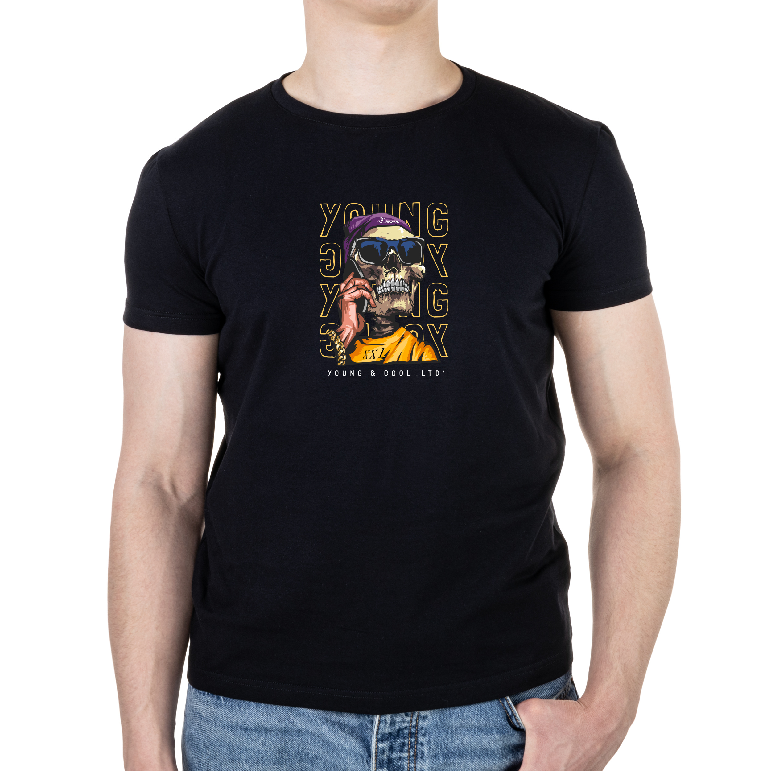 Футболка чоловіча чорна бавовна/еластан А4 розміру Young & Cool XL