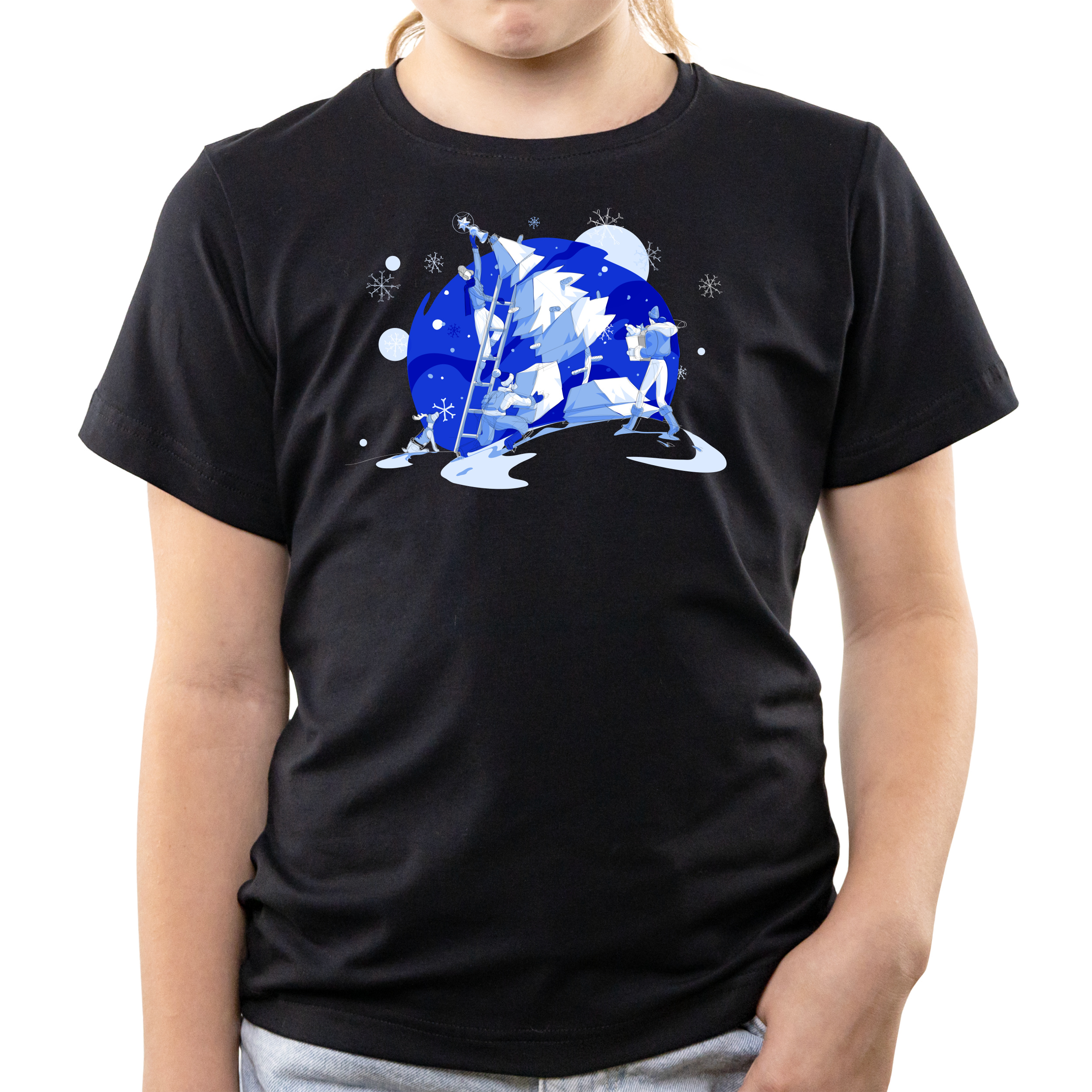 Футболка дитяча чорна бавовна/еластан Winter Christmas 128