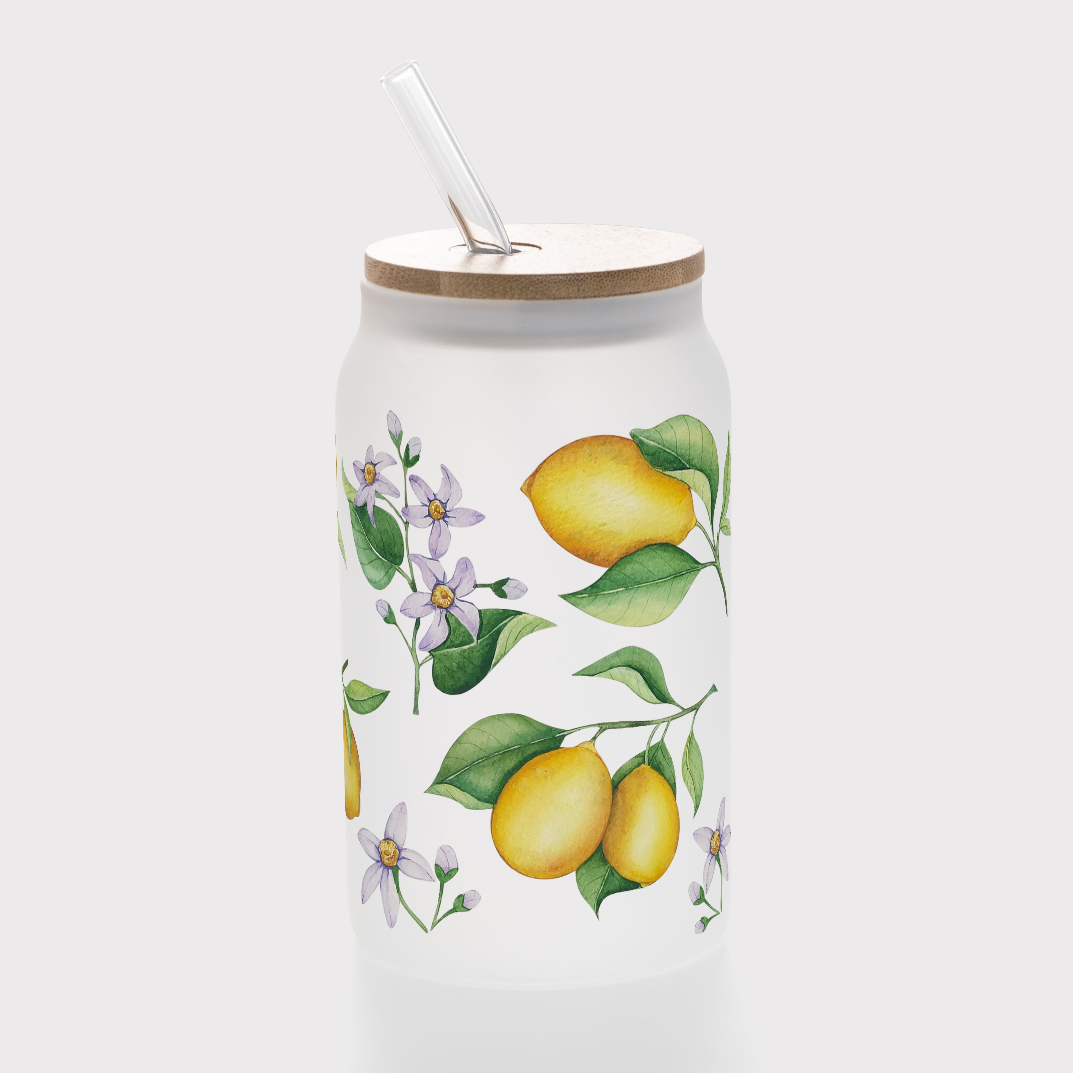 Банка зі скляною трубочкою і дерев'яною кришкою скляна матова (450 мл) Лимонадне літо