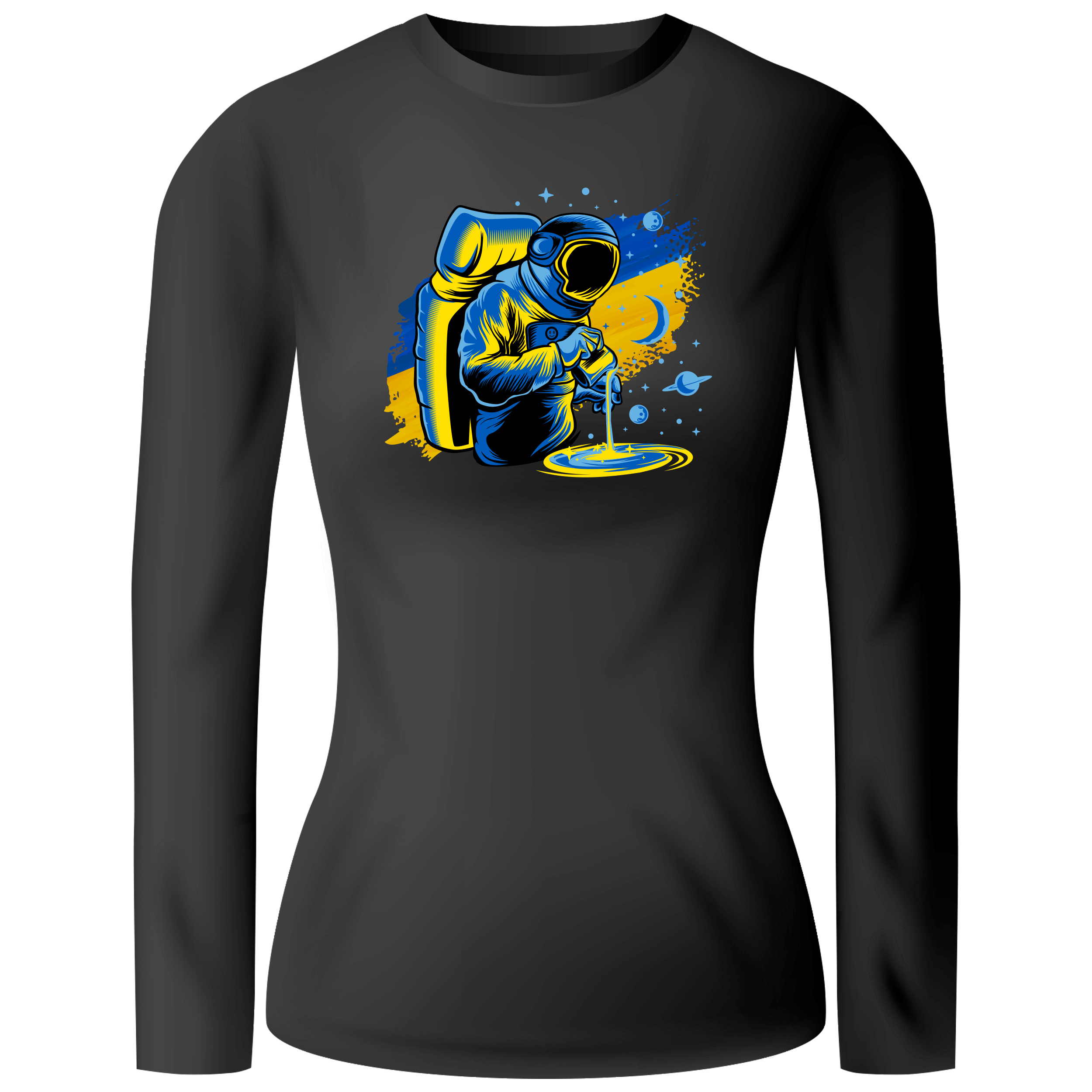 • Лонгслів женский чорний бавовна/еластан Ukrainian universe M - фото 1 - Лонгсліви