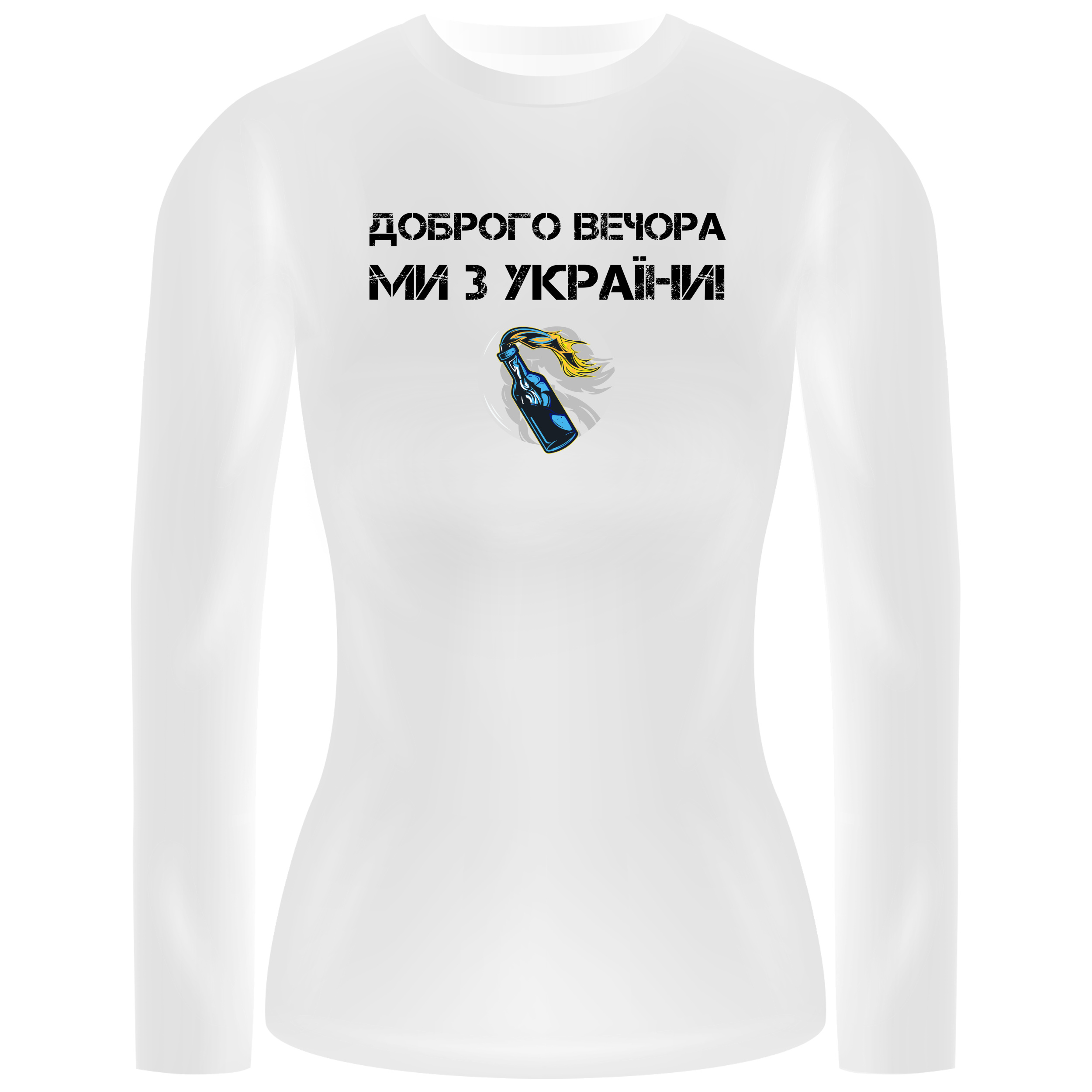 Лонгслів женский білий бавовна/еластан Ми з України! Молотов XXL