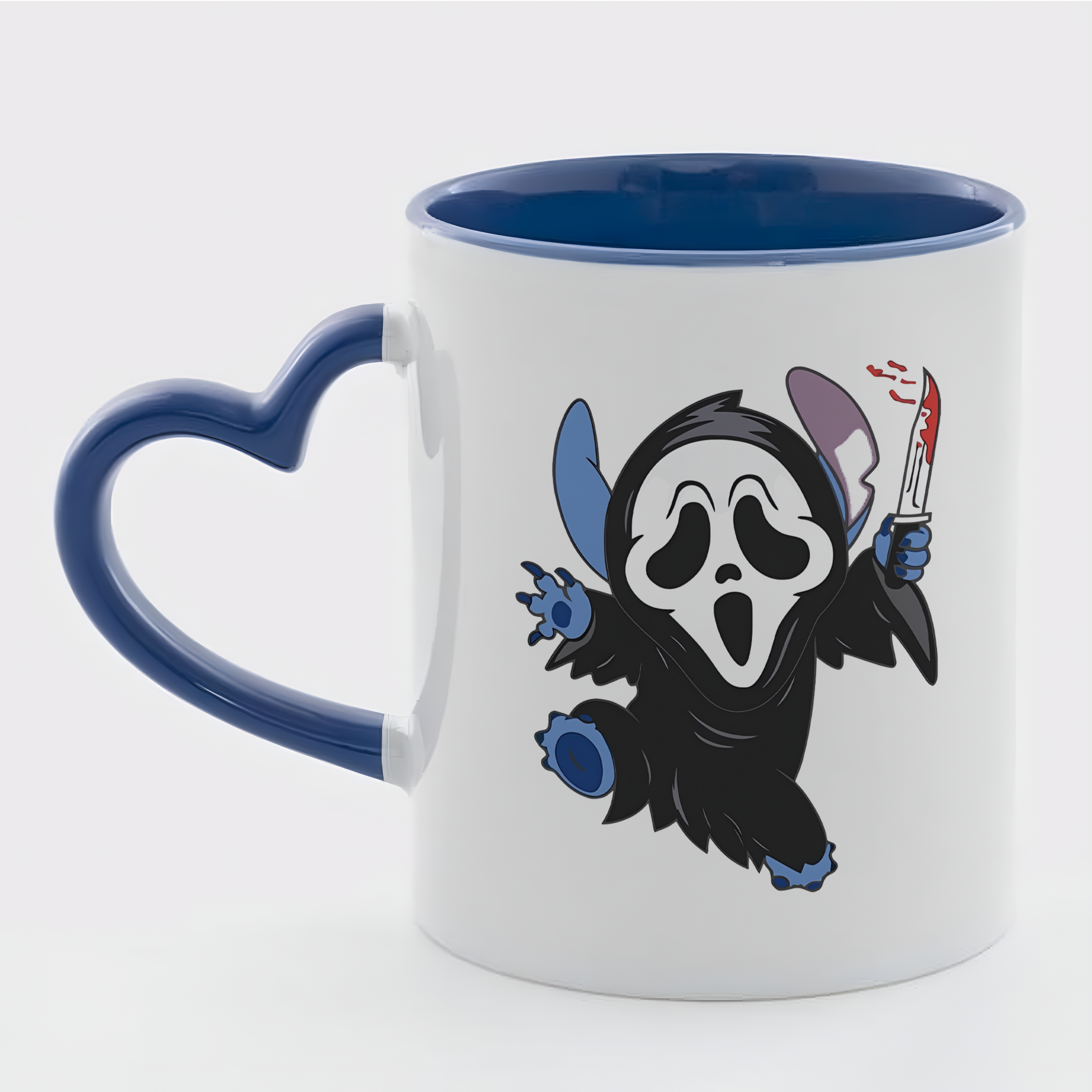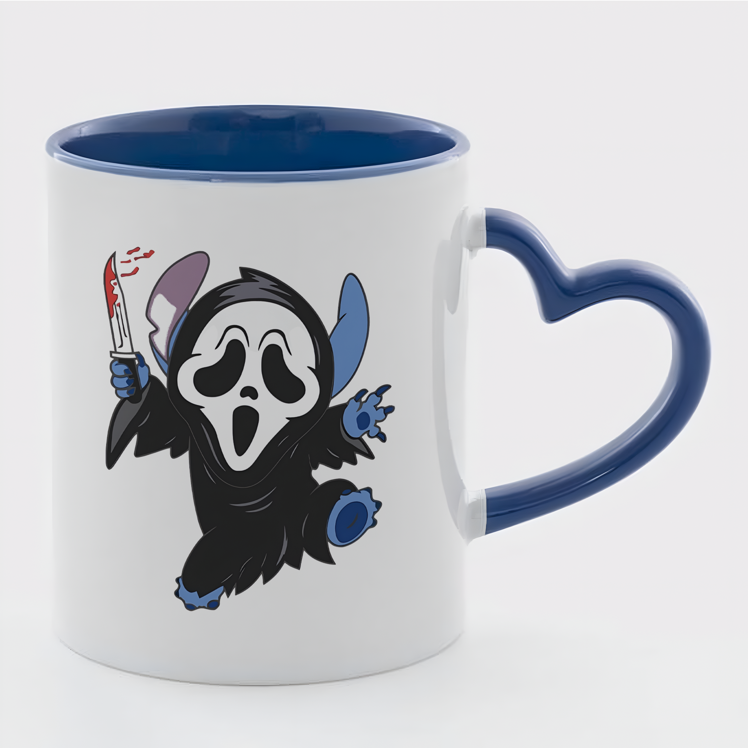 Чашка біла синя всередині та з синьою ручкою в формі серця (330 мл) Крик Стіча