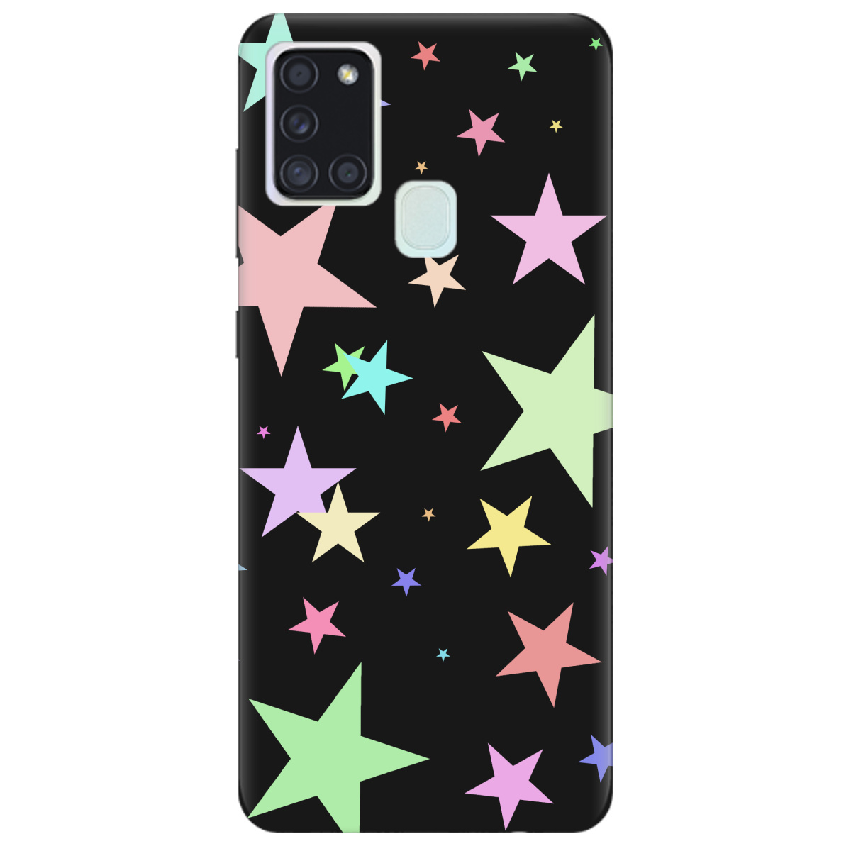 Чохол для Samsung Galaxy A21s чорний матовий soft touch Яскраві зірки (black)
