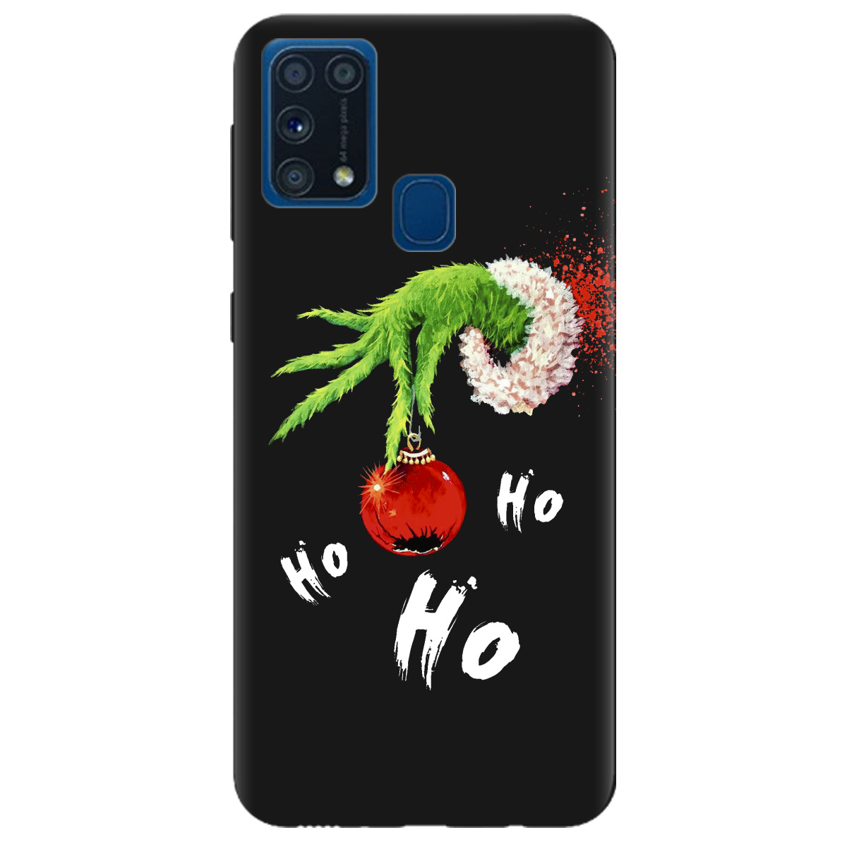 Стильний чохол Zorrov для Samsung Galaxy M31 чорний матовий soft touch Grinch HO HO HO не лише захистить телефон, а й підкреслить Вашу індивідуальність.