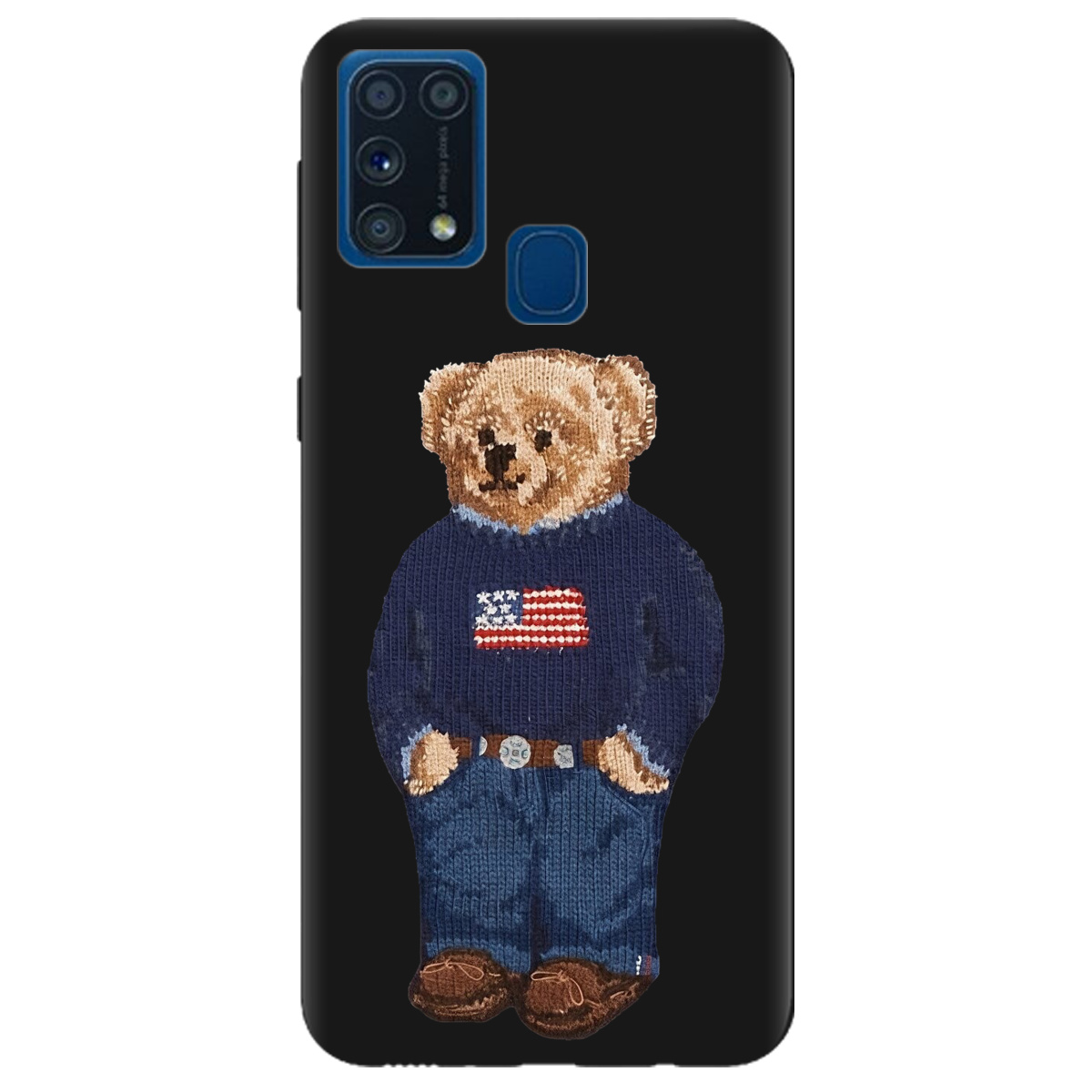 Чохол для Samsung Galaxy M31 чорний матовий soft touch Американський ведмедик