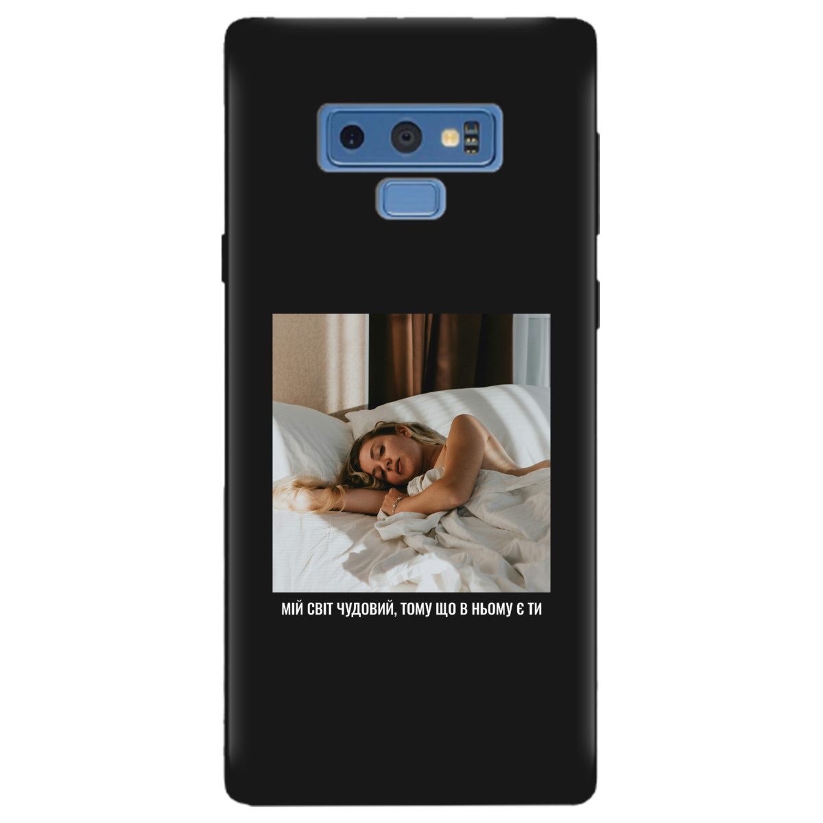 Чохол для Samsung Galaxy Note 9 чорний матовий soft touch З вашим фото "Ти мій світ"