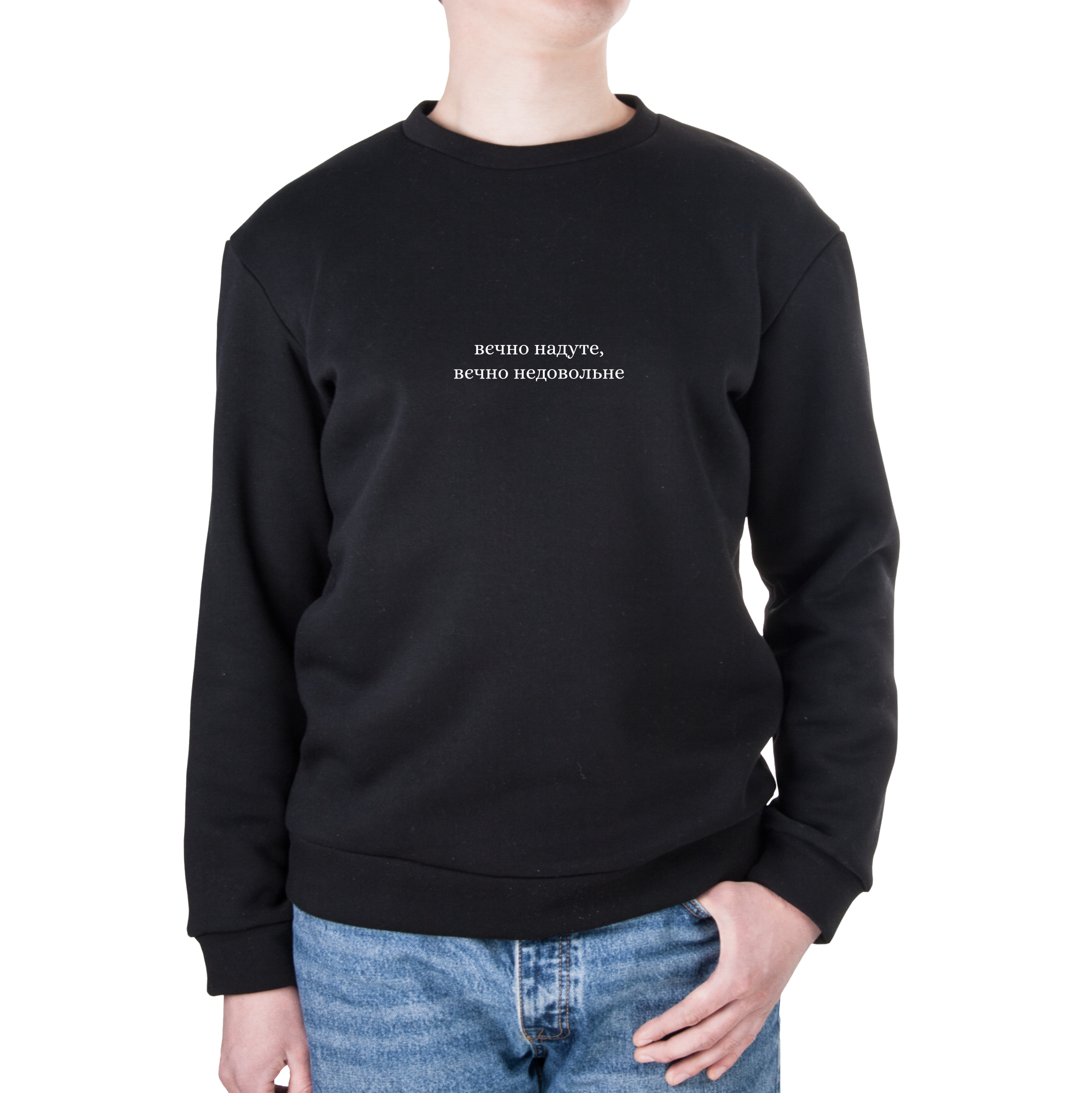 Світшот унісекс тринитка з начісом чорний Вєчно надуте, вєчно недовольне L
