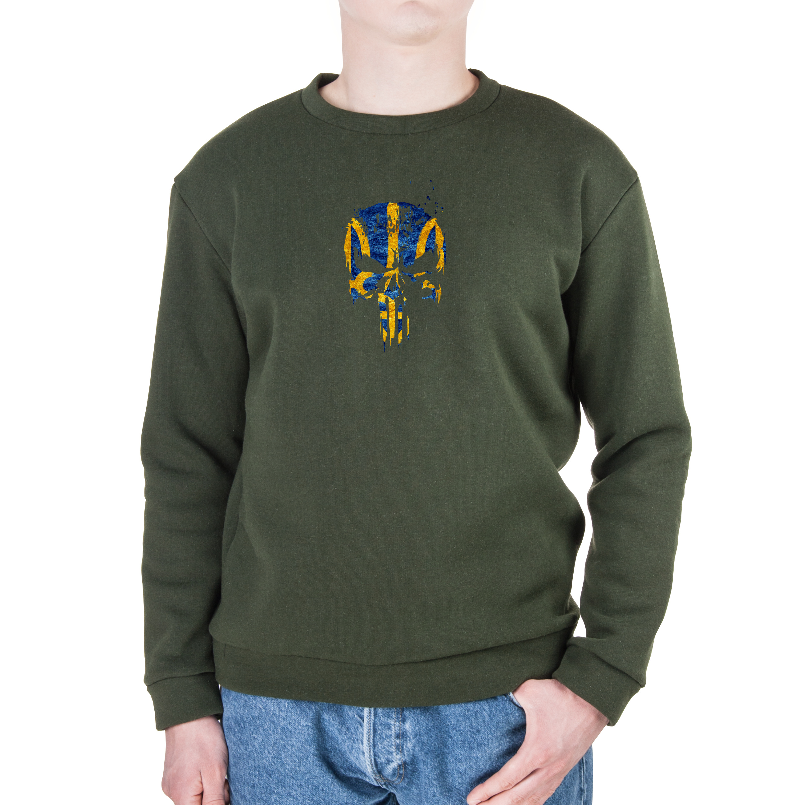 Світшот унісекс тринитка з начісом олива Skull ukrainian XXXL