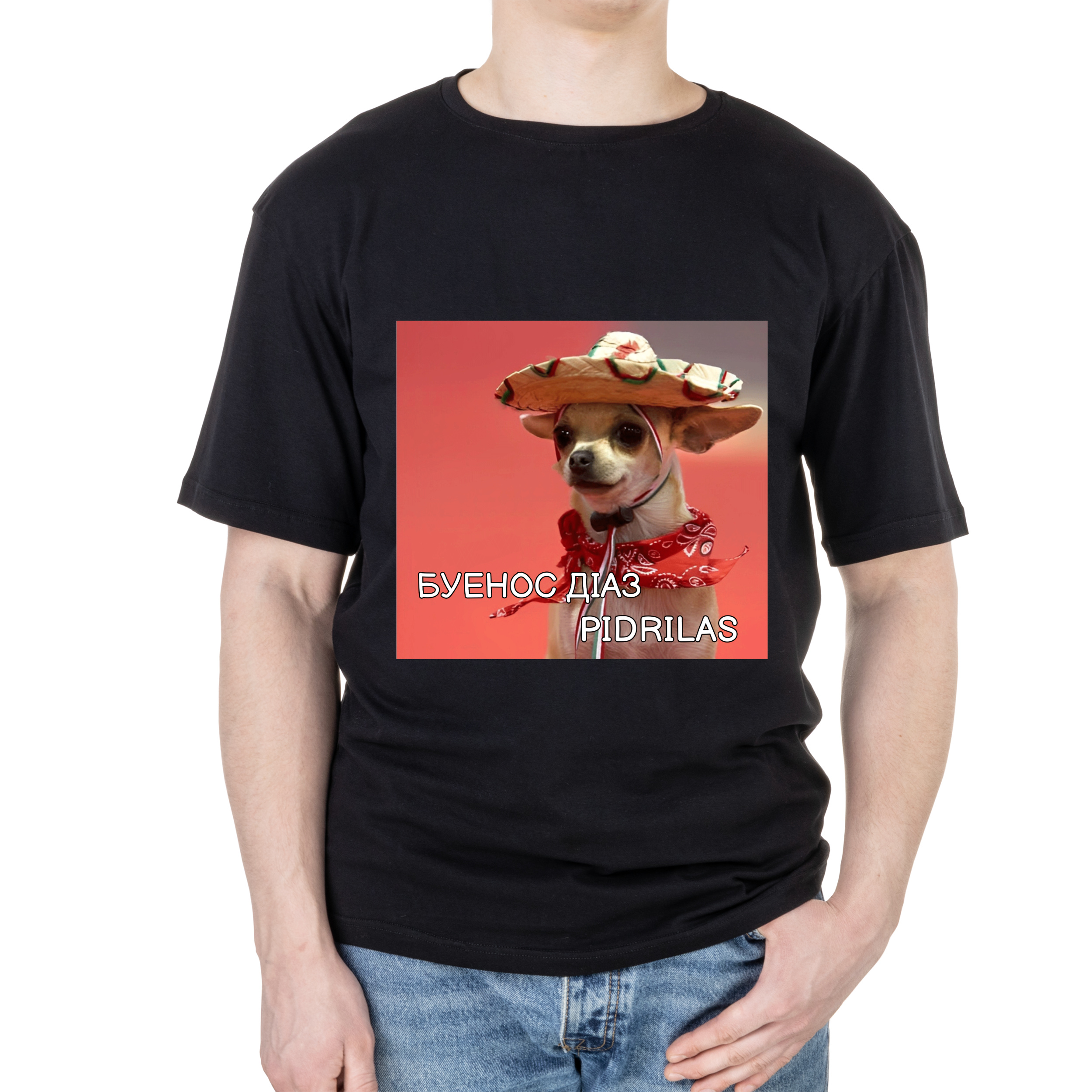 Футболка чоловіча оверсайз чорна бавовна/еластан А3 розміру Буенос діас L