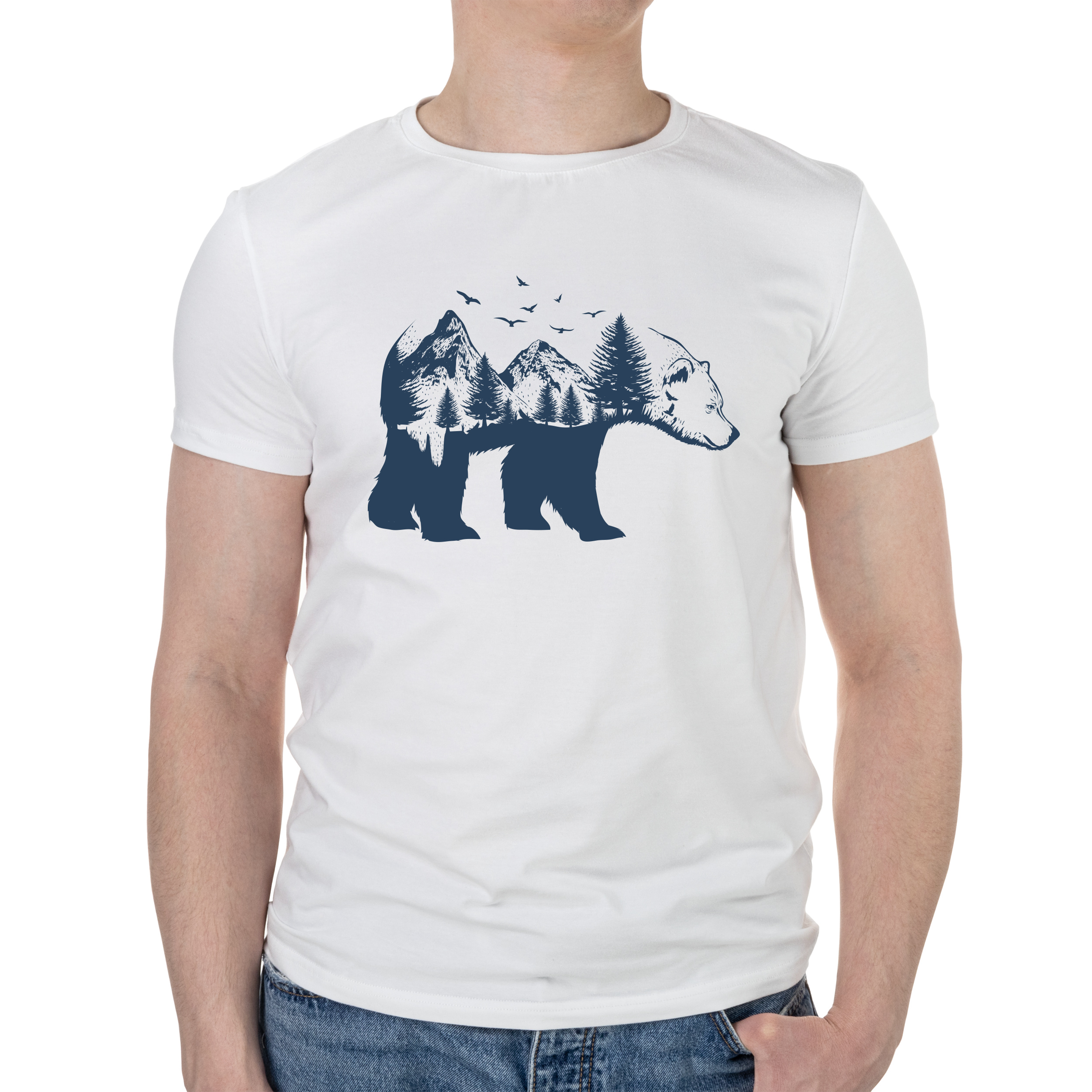 Футболка чоловіча біла бавовна/еластан А4 розміру Dark bear XL