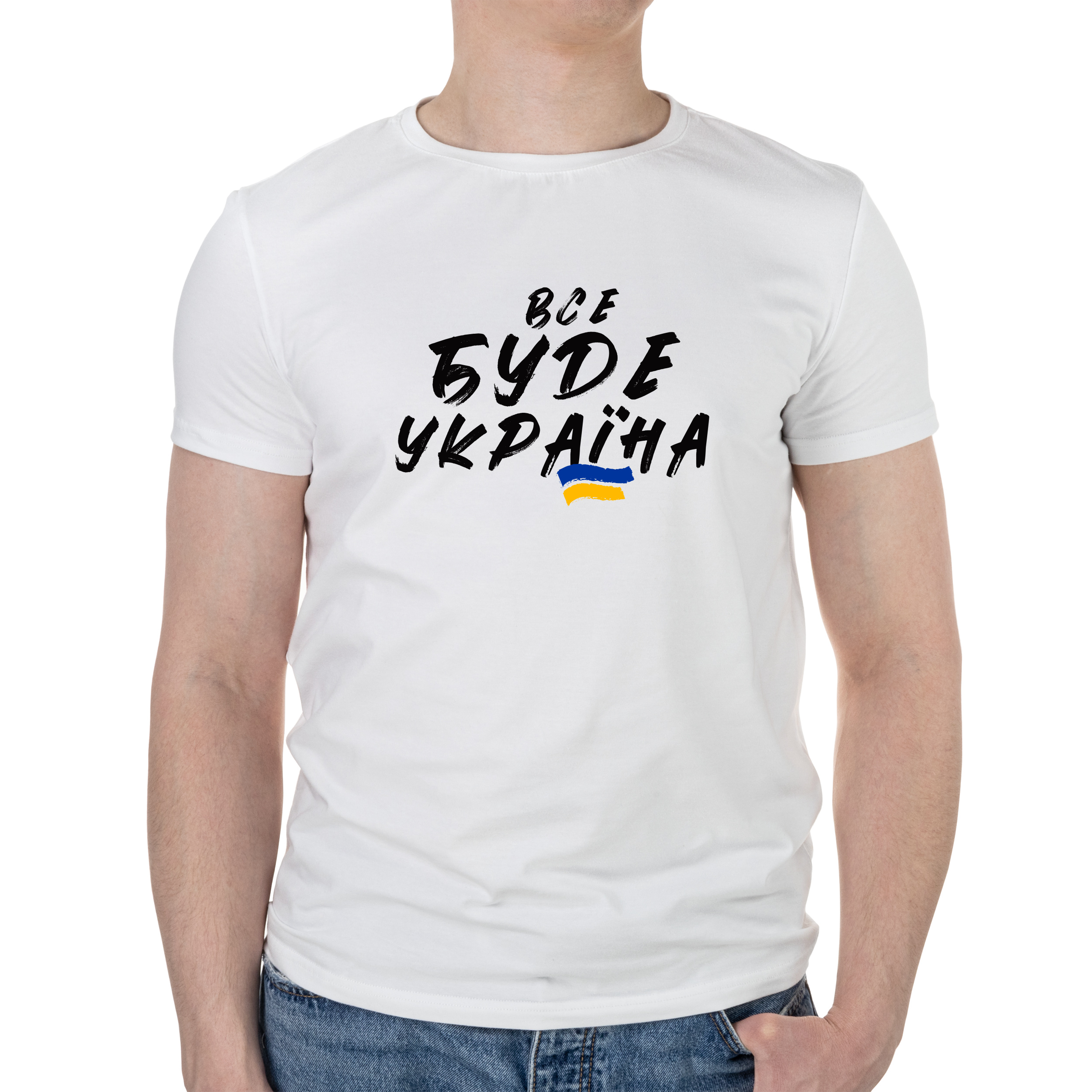 Футболка чоловіча біла бавовна/еластан А4 розміру Все буде Україна XS