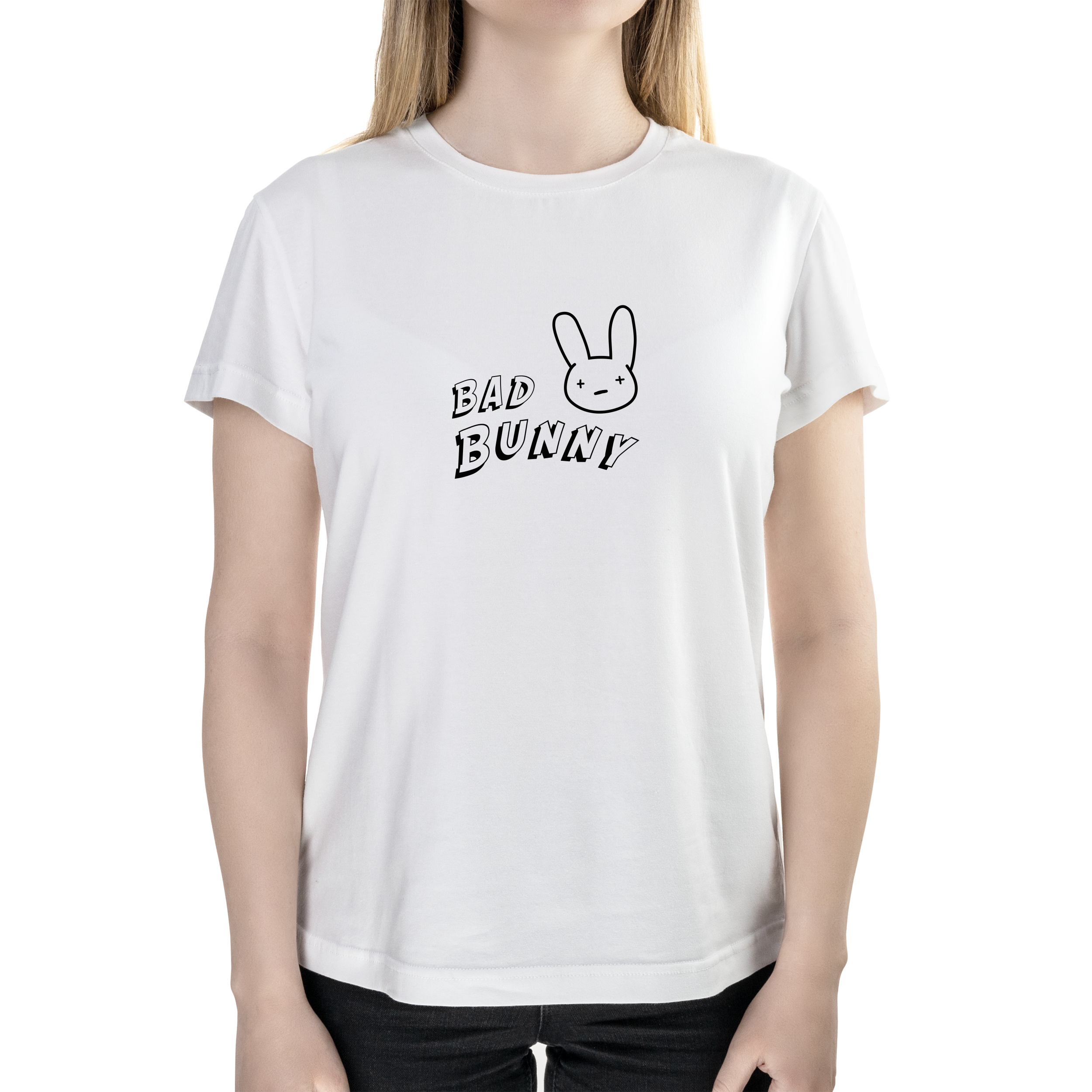 Футболка жіноча напівприталена біла бавовна/еластан А4 розміру Поганий зайчик L
