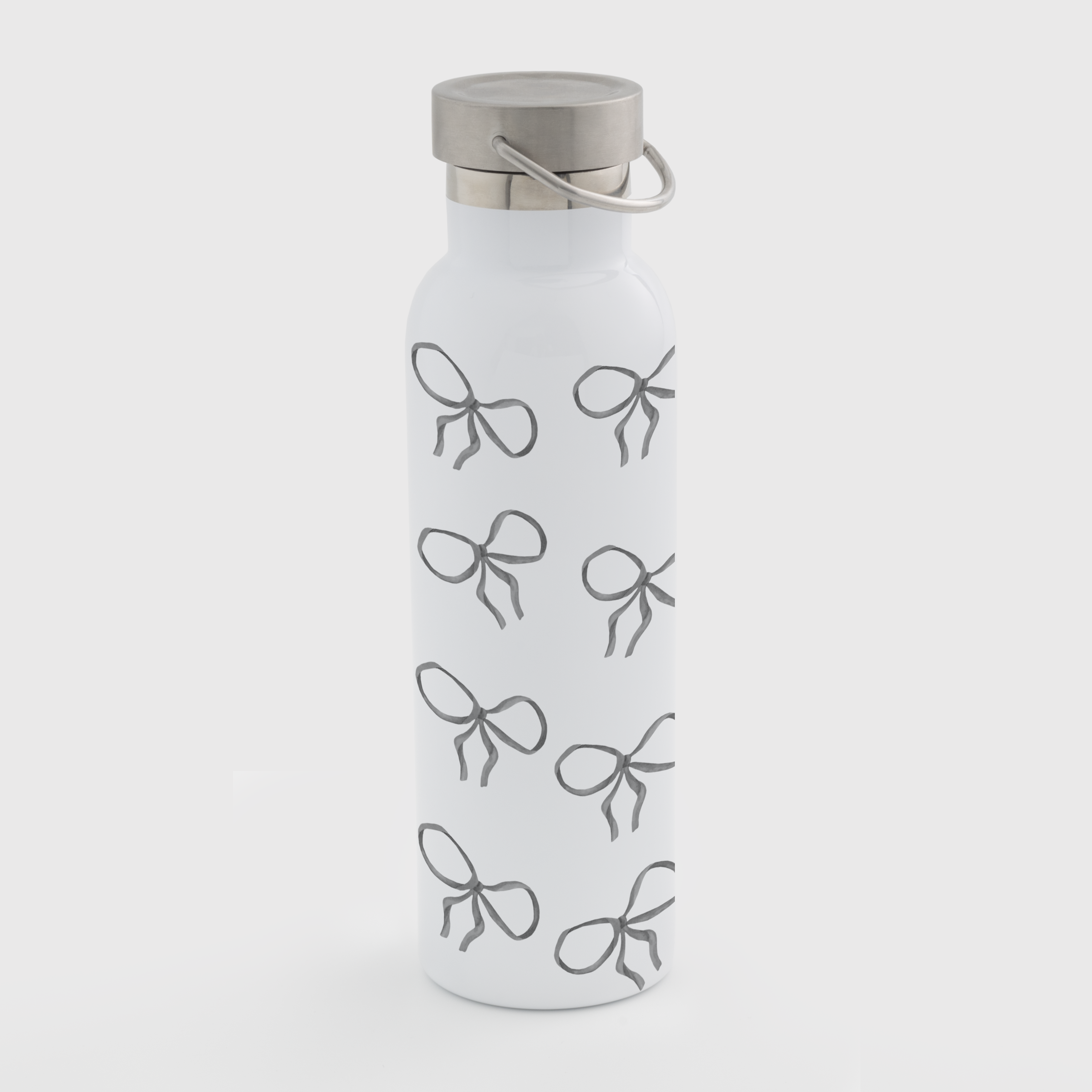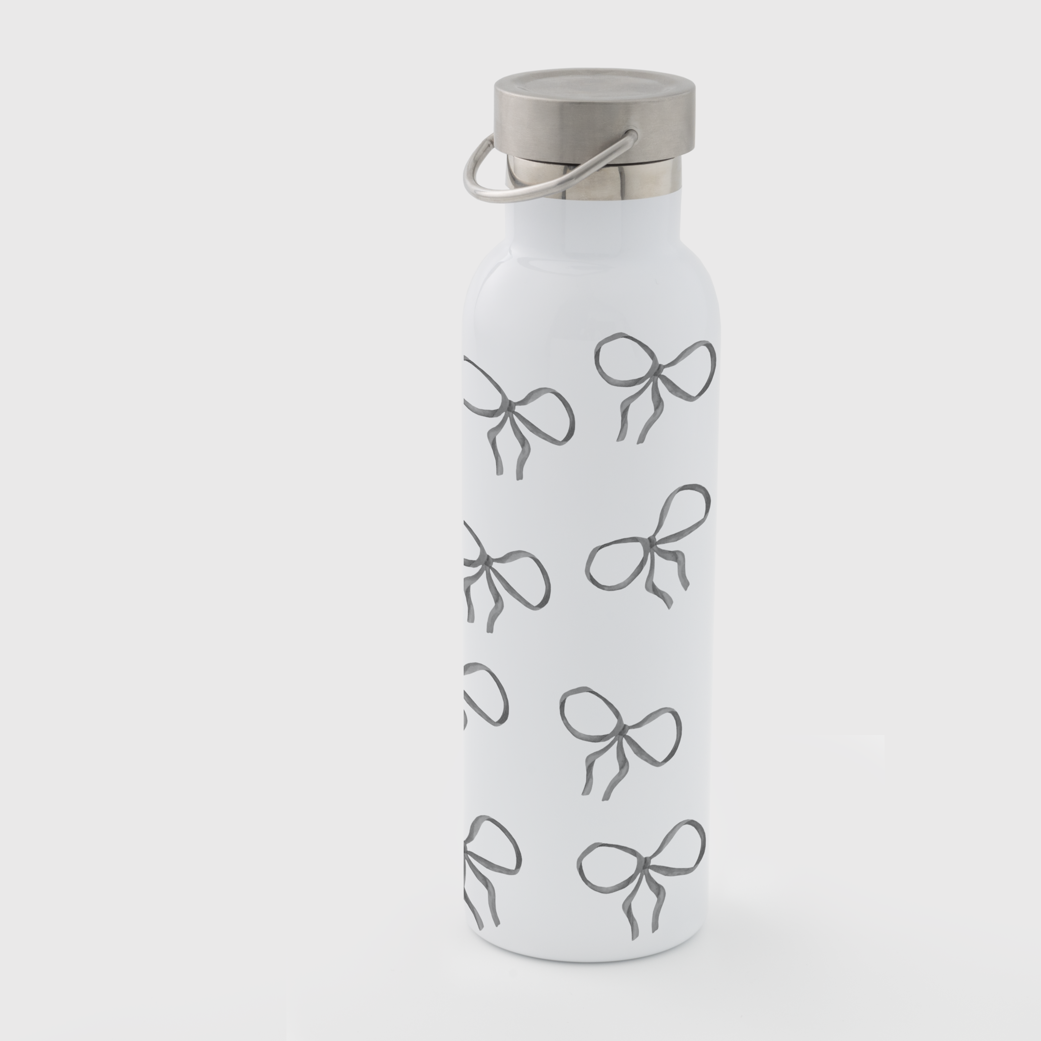 Термопляшка біла з металевою кришкою і ручкою (750 мл) Бантики на щастя