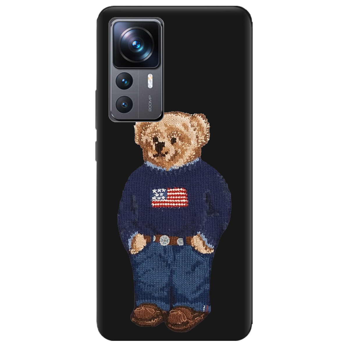 Стильний чохол Zorrov для Xiaomi 12T чорний матовий soft touch Американський ведмедик не лише захистить телефон, а й підкреслить Вашу індивідуальність.