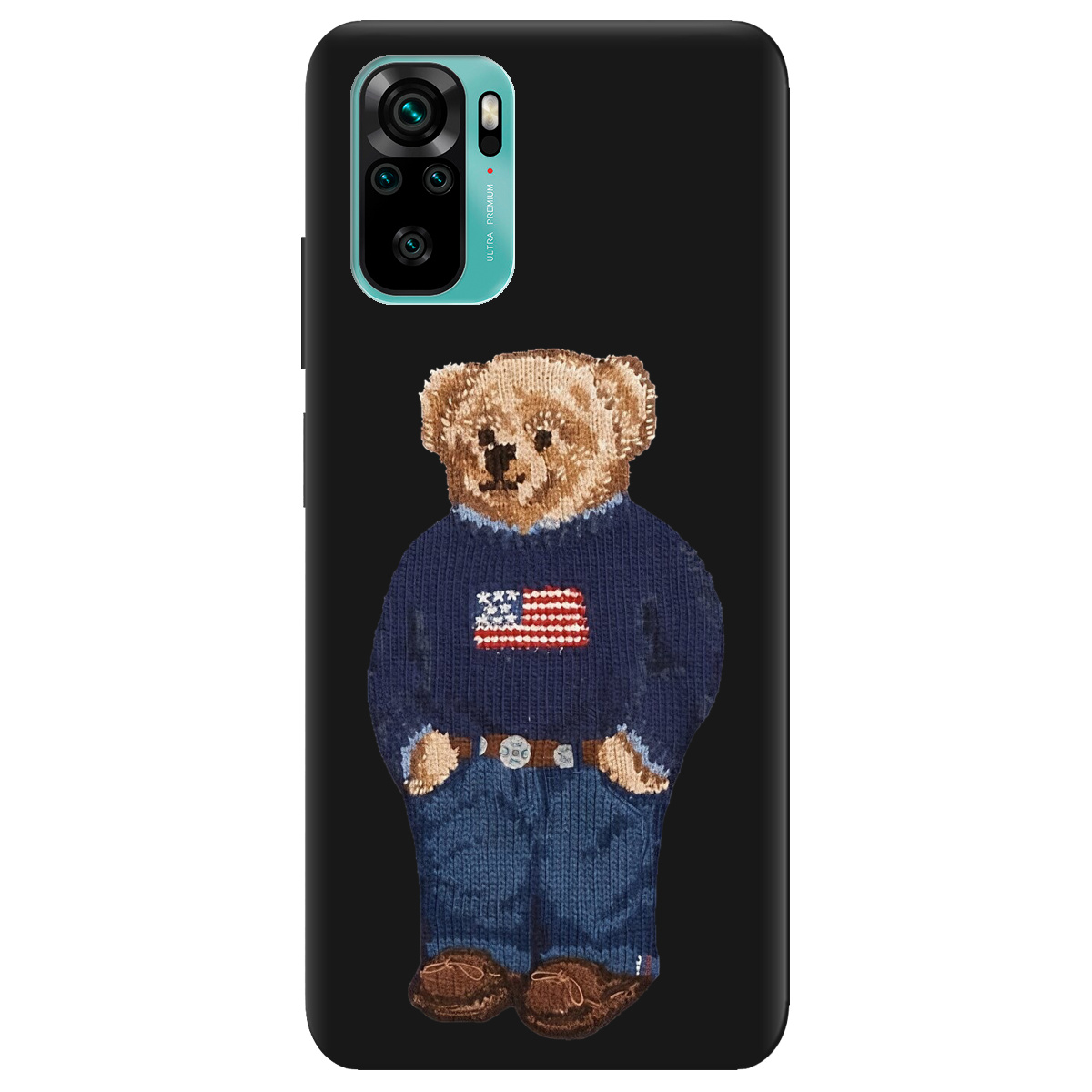 Стильний чохол Zorrov для Xiaomi Redmi Note 10s чорний матовий soft touch Американський ведмедик не лише захистить телефон, а й підкреслить Вашу індивідуальність.