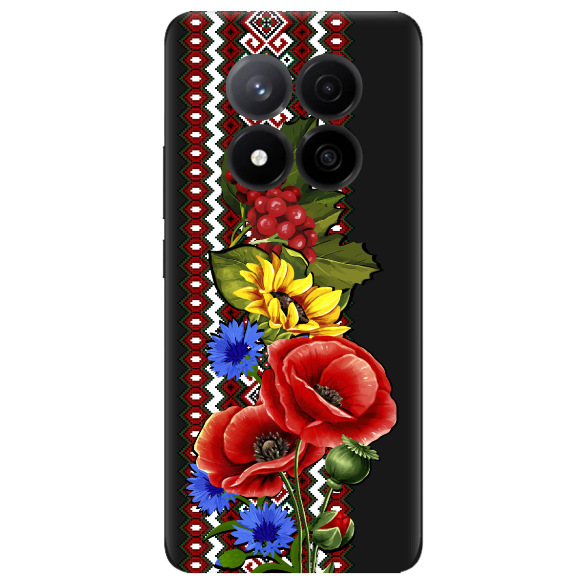 Стильний чохол Zorrov для Xiaomi Redmi Note 14 Pro + 5G чорний матовий soft touch Ukraine ornament не лише захистить телефон, а й підкреслить Вашу індивідуальність.