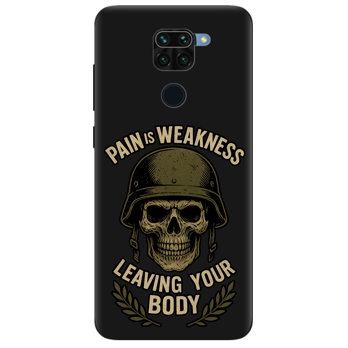 Стильний чохол Zorrov для Xiaomi Redmi Note 9 чорний матовий soft touch Біль - це слабкість не лише захистить телефон, а й підкреслить Вашу індивідуальність.